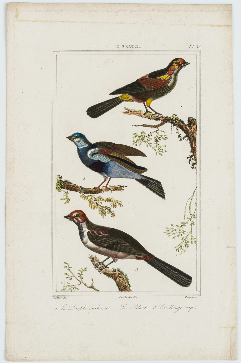 • Bezeichnung: Oben betitelt: “Oiseaux.” Unten signiert und betitelt: “1. Le Diable enrhumé_ 2. Le Bluet_ 3. Le Rouge cap.”