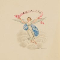 Müller (19th century), Greeting card with angel. Freedom, Virtue, God, 1835, Watercolor