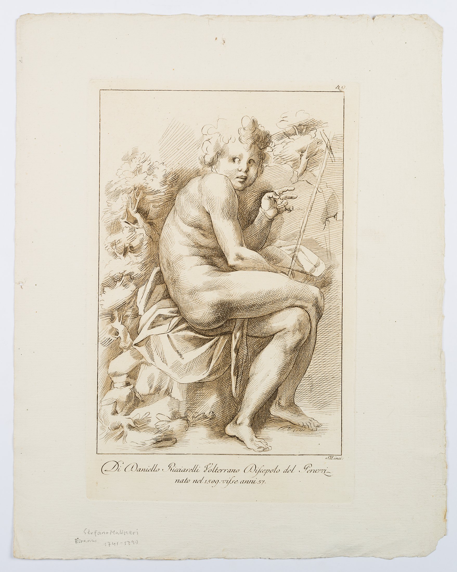 Stefano Mulinari (1741 Florenz – 1790 ebd.) nach Daniele da Volterra (1509 Volterra – 1566 Rom), Sitzender Knabe, 1778, Radierung