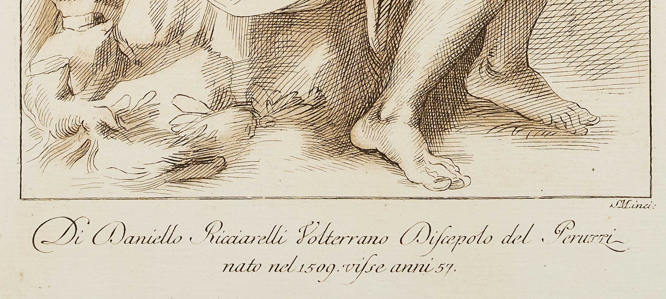 - Description: Etching after a drawing by Daniele da Volterra (actually Daniele Ricciarelli) from the series of 50 etchings after drawings from the Uffizi “Istoria Pratica dell’ Incominciamento, e Progressi della Pittura”, published in Florence in 1778.