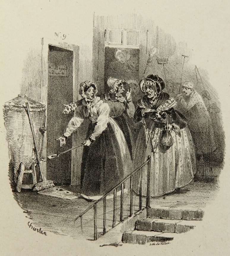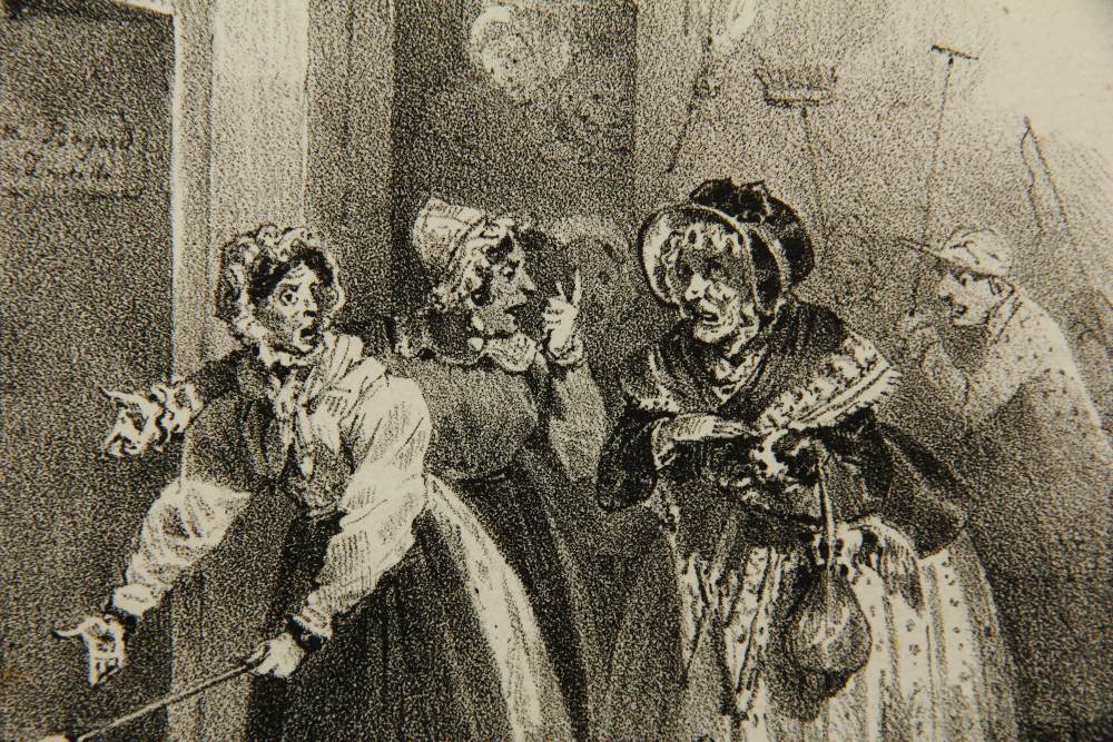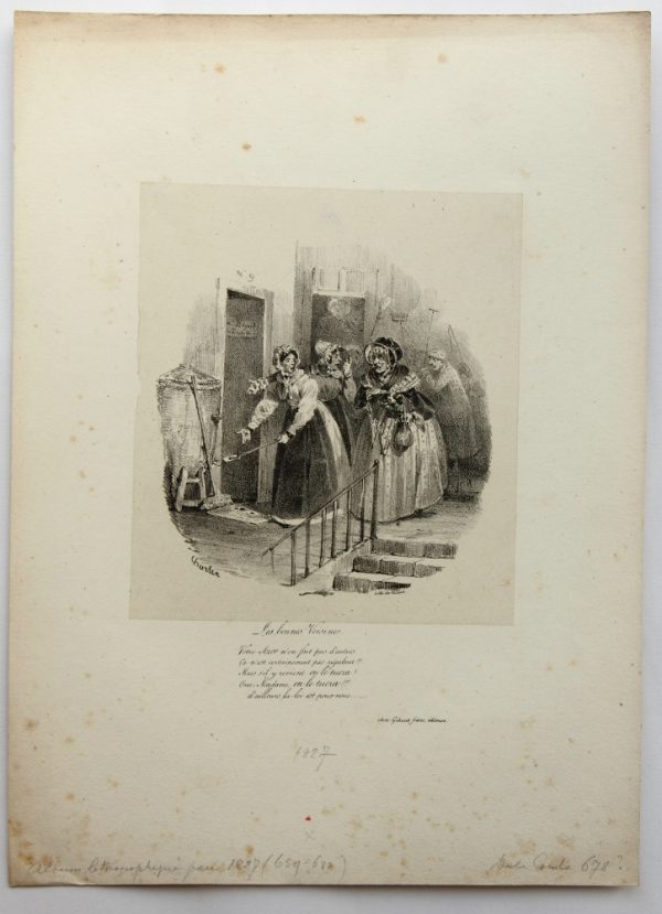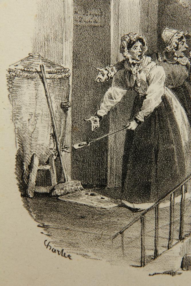Nicolas-Toussaint Charlet (1792 Paris – 1845 ibid.), Upset ladies hunting mice, 1827, Lithography