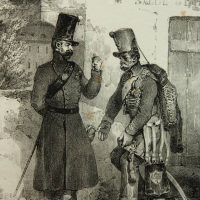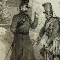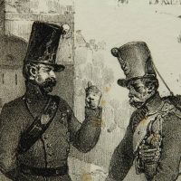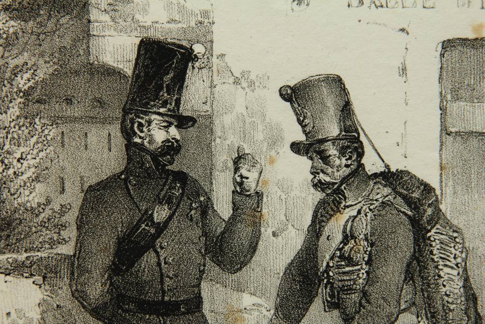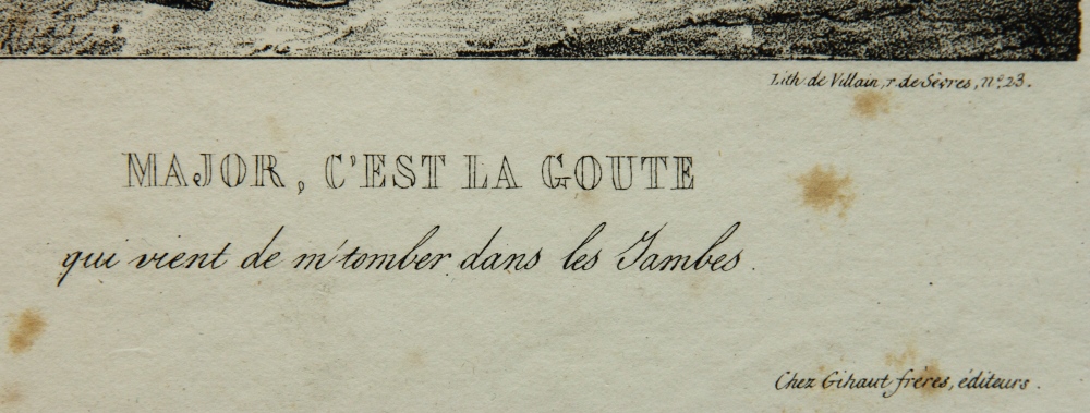 Nicolas-Toussaint Charlet (1792 Paris – 1845 ibid.), Drunken soldier at the Rapport, 1828, Lithography