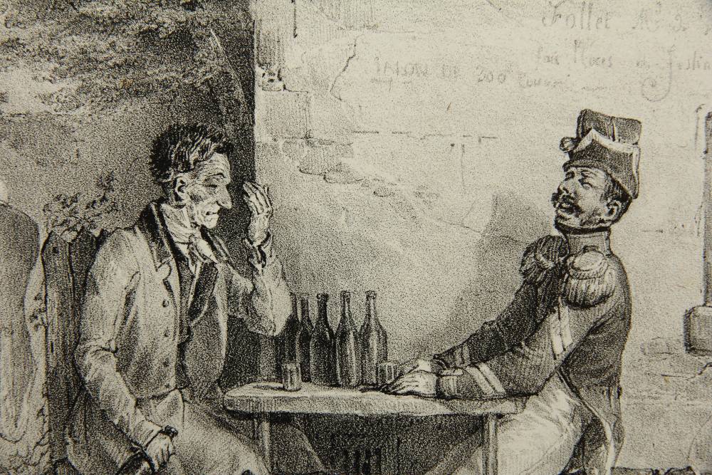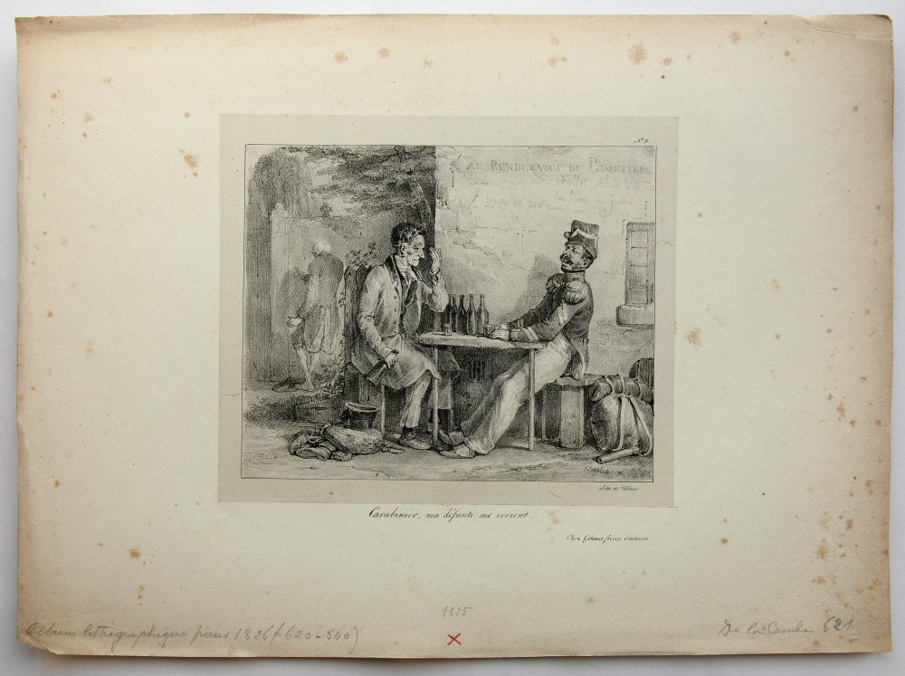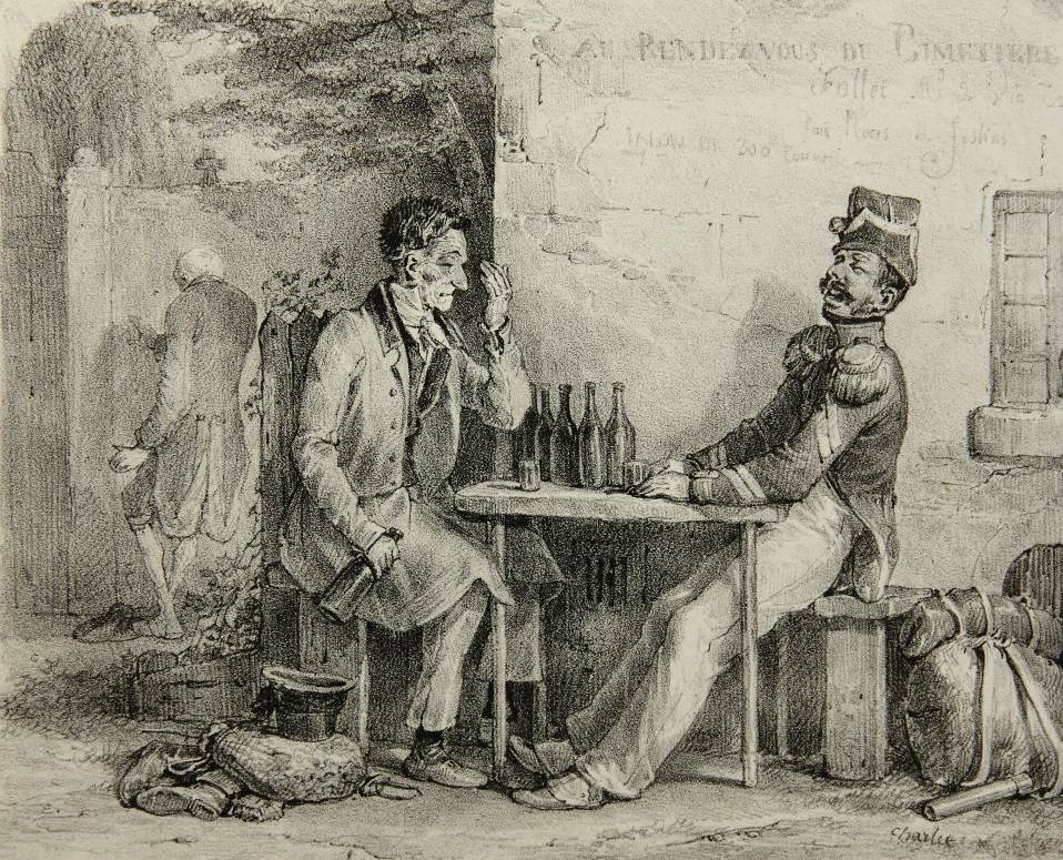 Nicolas-Toussaint Charlet (1792 Paris – 1845 ibid.), French soldier and citizen after carousing, 19th century, Lithography