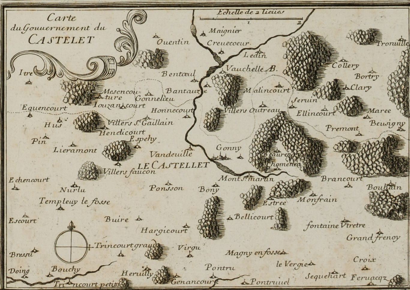 - Bezeichnung: Rechts unten mit einer Nebenkarte vom “Gouvernement du CASTELET”.