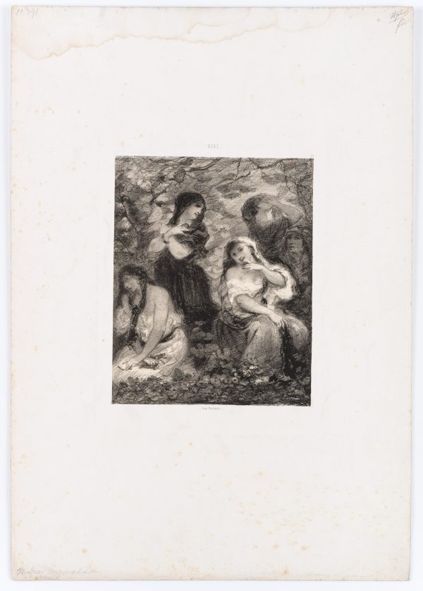 - Beschreibung: Über der Darstellung signiert “DIAZ”, unten mittig bezeichnet “Imp. Bertauts”. In der unteren Blattecke links handschriftlich bezeichnet: “N.Diaz Original Lith.”.