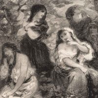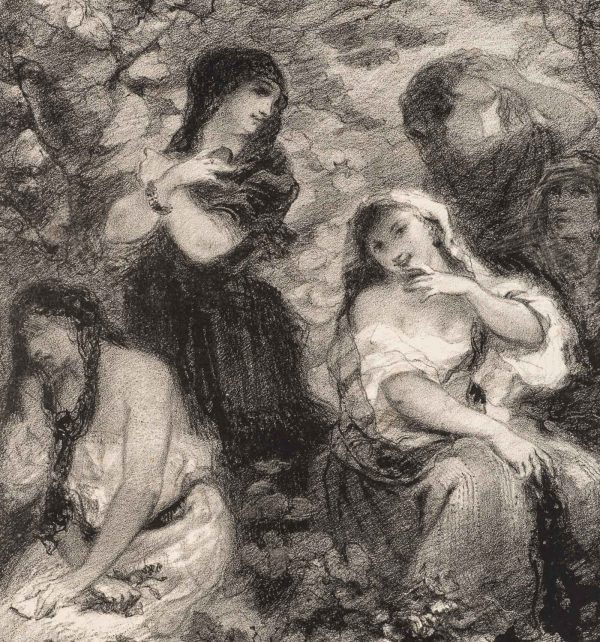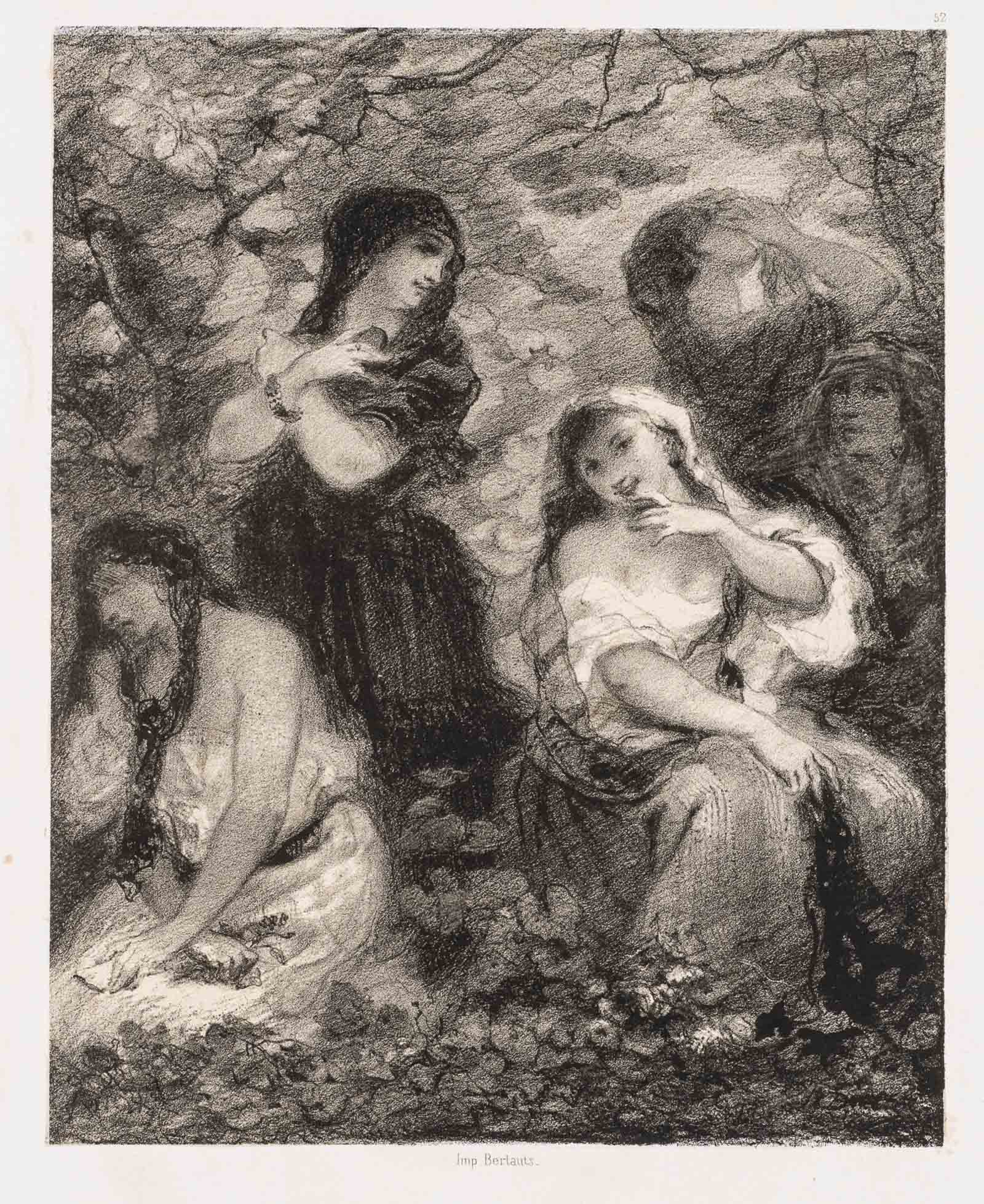 Narcisse Diaz De La Pena (1807 Bordeaux – 1876 Menton), Five women at the grape harvest, Les Folles Amoureuses, c. 1844, Lithography