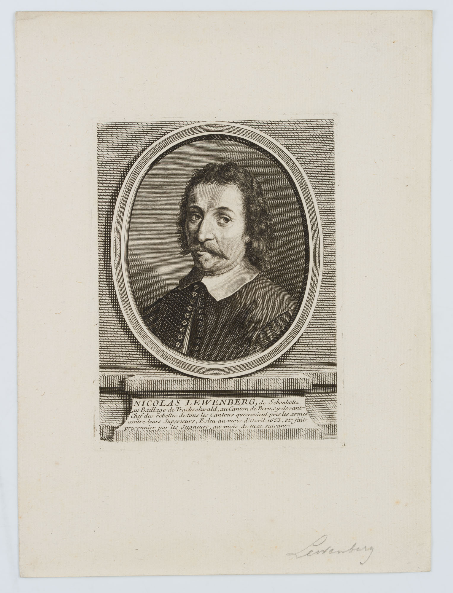 Nicolas Lewenberg de Schonholz (um 1615 Schönholz – 1653 Bern), Portrait des Niklaus Leuenberger, um 1650, um 1650, Kupferstich