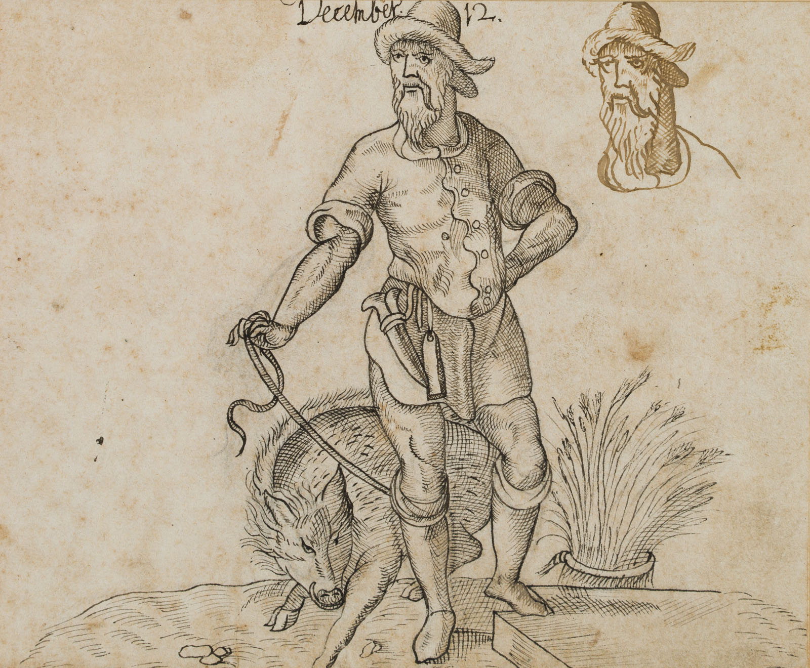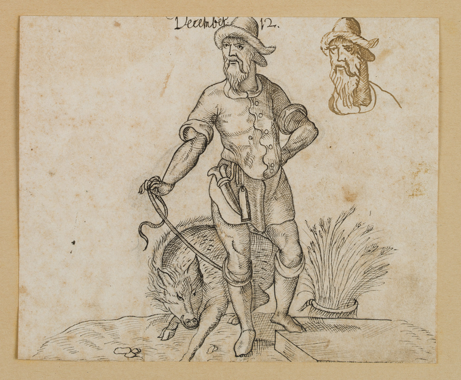 After Jost Amman (1539 Zurich – 1591 Nuremberg), From a series of drawings after Jost Amman’s, series of the 12 months from 1588, “December”, c. 1700, Pen drawing