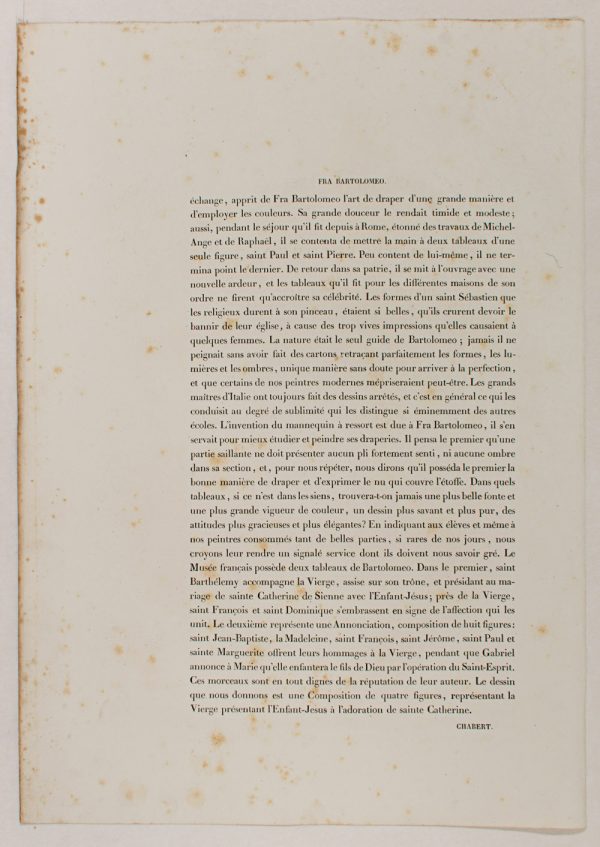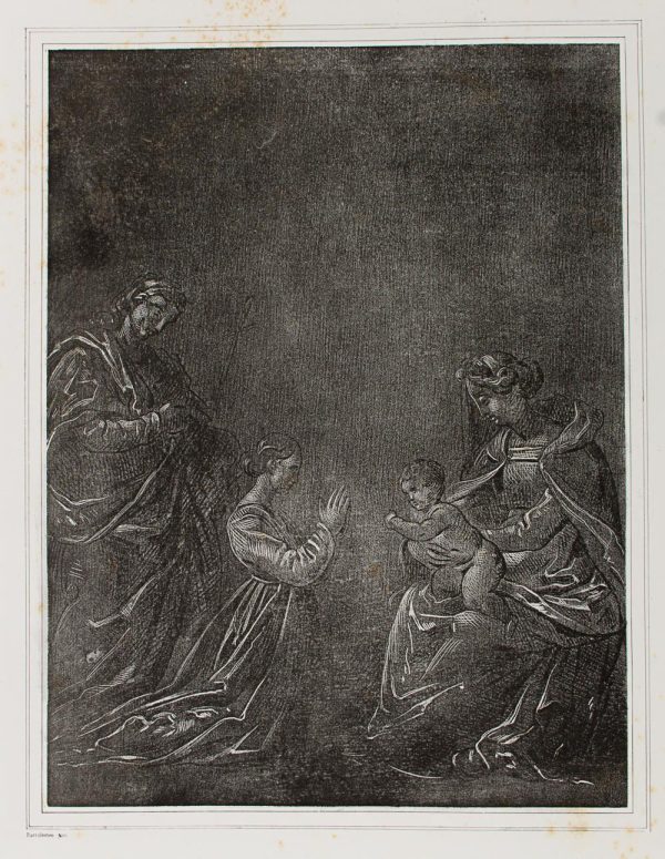 - Description: Adoration of the Virgin Mary”, lithograph of a painting by Fra Bartolomeo (1469 -1517). From the series: Pictures of the Romanesque School (Ecole de Florence). Inscribed Bartolomeo pinx. Separate text information (In French by Chabert) in the format of the art sheet. .