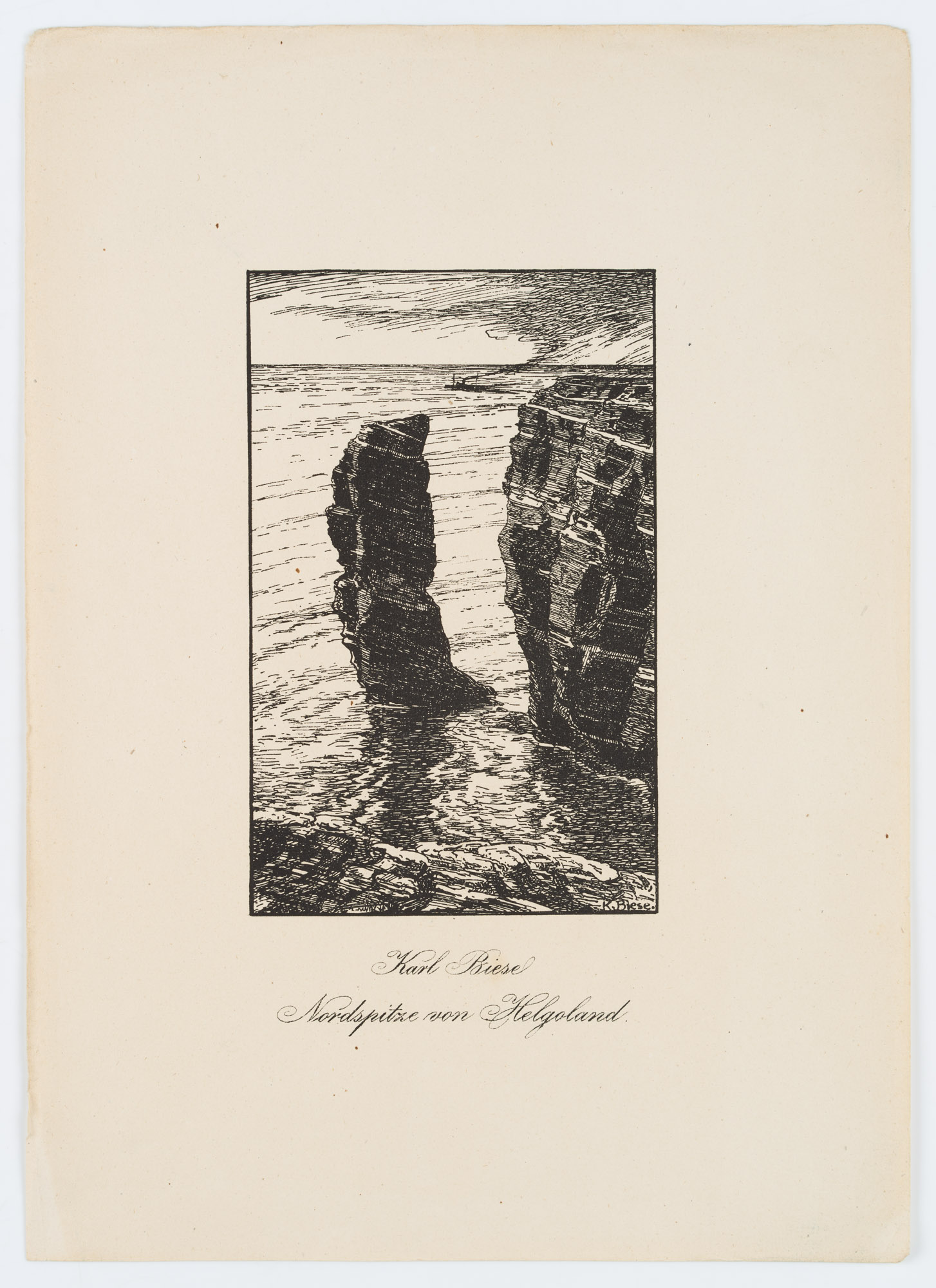 Nach Karl Biese (1863 Hamburg – 1926 Tübingen), “Nordspitze von Helgoland”, Kunstdruckblatt nach einer Federzeichnung, , Reproduktion