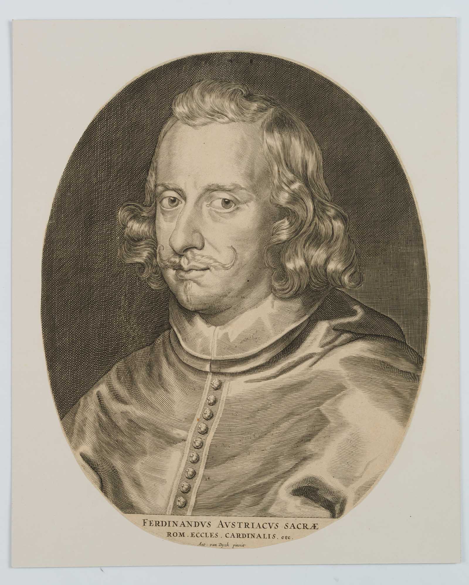 Nach Anthonis van Dyck (1599 Antwerpen – 1641 London), Portrait des Ferdinand von Spanien und Portugal. Kardinalinfant. Prinz aus der spanischen Linie des Hauses Habsburg, 18. Jahrhundert, Kupferstich
