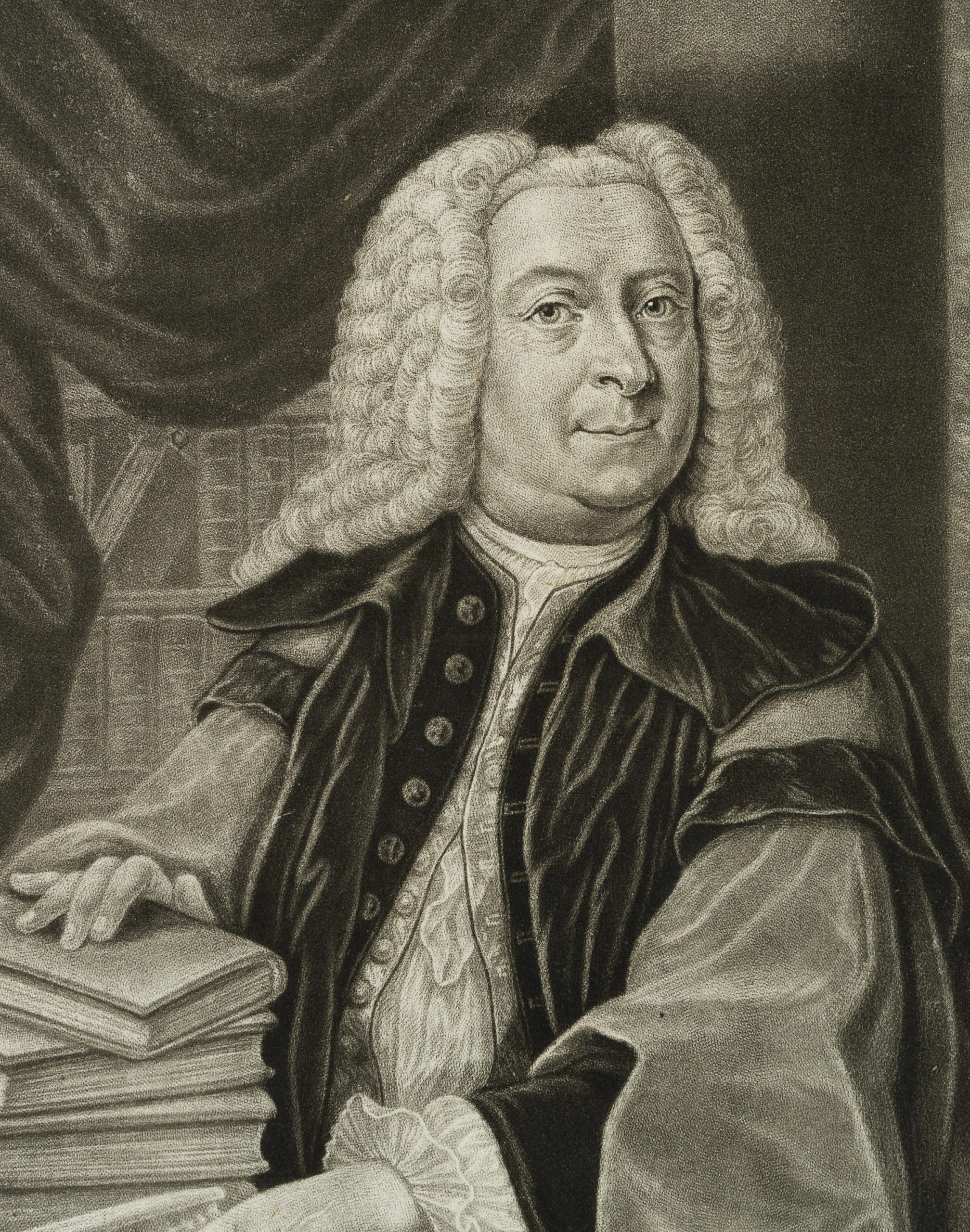 The portrait shows Georg Christian Gebauer (1690-1773), lecturer of jurisprudence in Leipzig. The portrait not only conveys the impression of an image of the sitter’s physiognomy, but also allows conclusions to be drawn about the sitter’s inner life through his pose and the surroundings. As a jurist, historian and university lecturer, he wears a gown, his right hand rests on a pile of books, his left hand points to a piece of writing. It seems as if he has been absorbed in the file and has had this portrait engraved with the flair of a snapshot in his library.