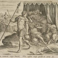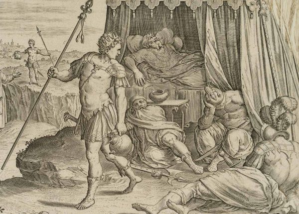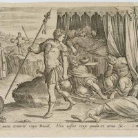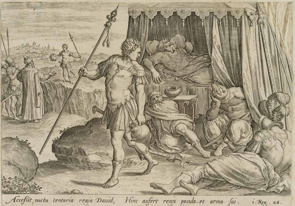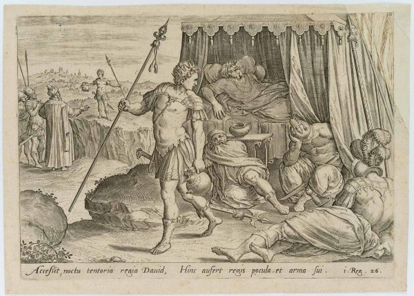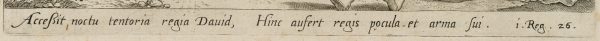 - Inscription: Inscribed in Latin below and numbered “Accessit, noctu tentoria regia David, Hinc aussert regis pocula et arma fui. i. Reg. 26”.