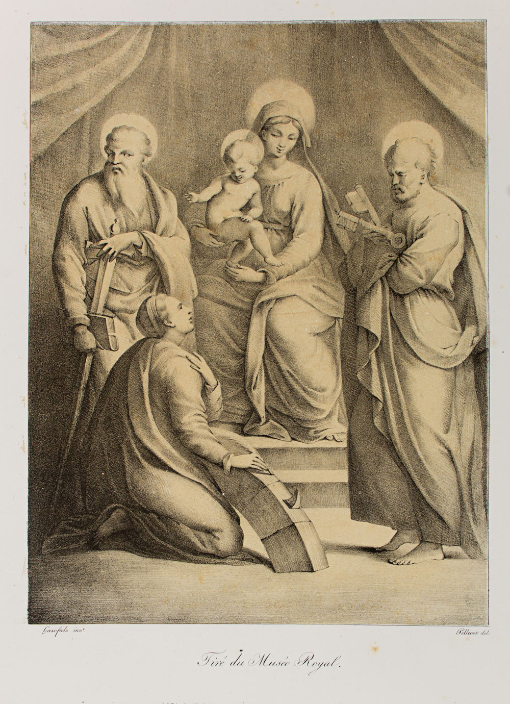 After Benvenuto Tisi Garofalo (1481 Ferrara – 1559 ibid.), Mary with Jesus and St Catherine, c. 1830, Lithography