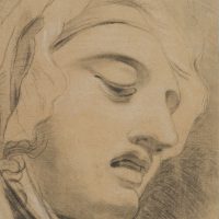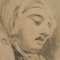 - Description: The depiction is based on Jean-Baptiste Greuze’s Head Portrait of a Sleeping Woman. As in the present portrait, Greuze showed his wife in the moment of sleep with her mouth slightly open, her eyes closed and her curls falling out of her bonnet. In our portrait, as in Greuze’s, the facial features are softly and finely drawn, while the dress and the background are laid out in bold, free-flowing strokes.