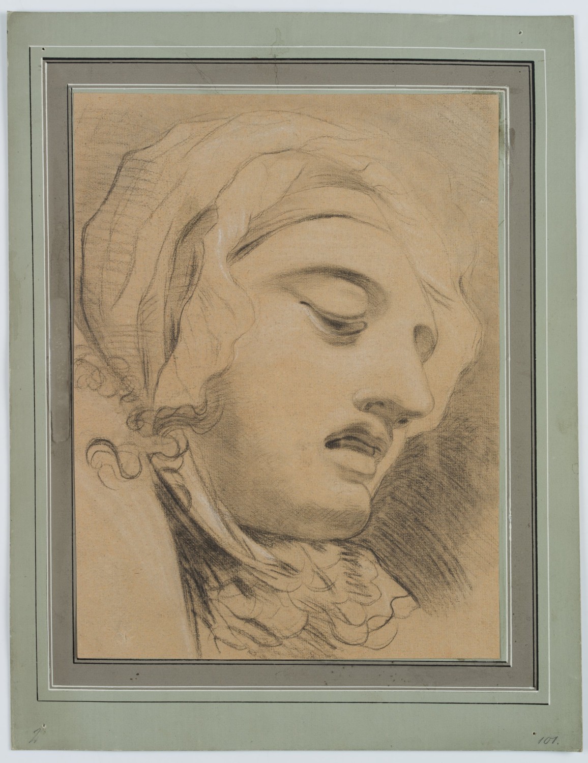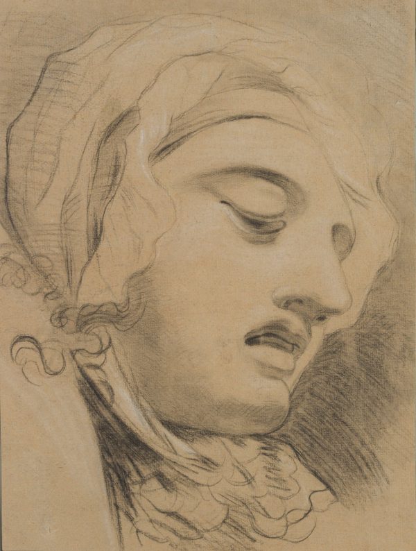 After Jean-Baptiste Greuze (1725 Tournus – 1805 Paris), Head Study of a Lady with a Bonnet, c. 1750, Charcoal
