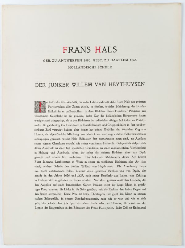 - Description: From the catalogue: Masterpieces of Painting. Old Masters. Reproductions in Photogravure. With a preface and accompanying text by Wilhelm Bode and Fritz Knapp, Berlin 1905. Please note further offers from the Masterpieces catalogue in our online shop. The photogravure is accompanied by the corresponding picture text by Wilhelm Bode on an additional sheet.