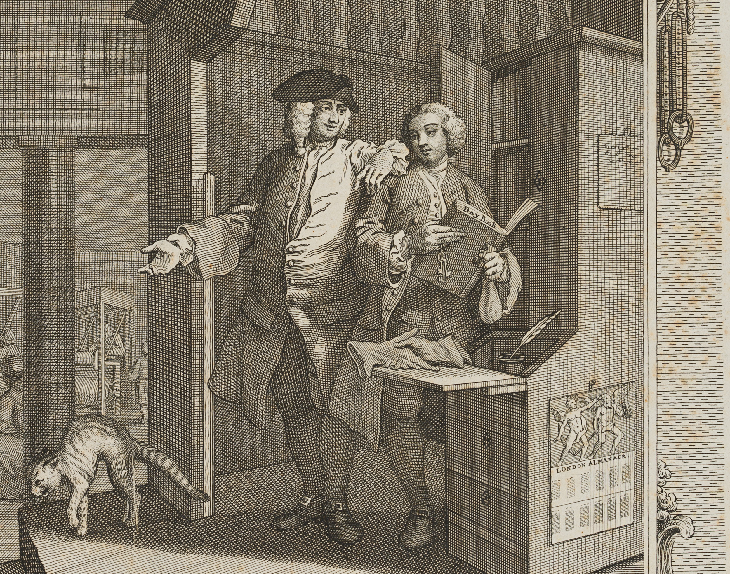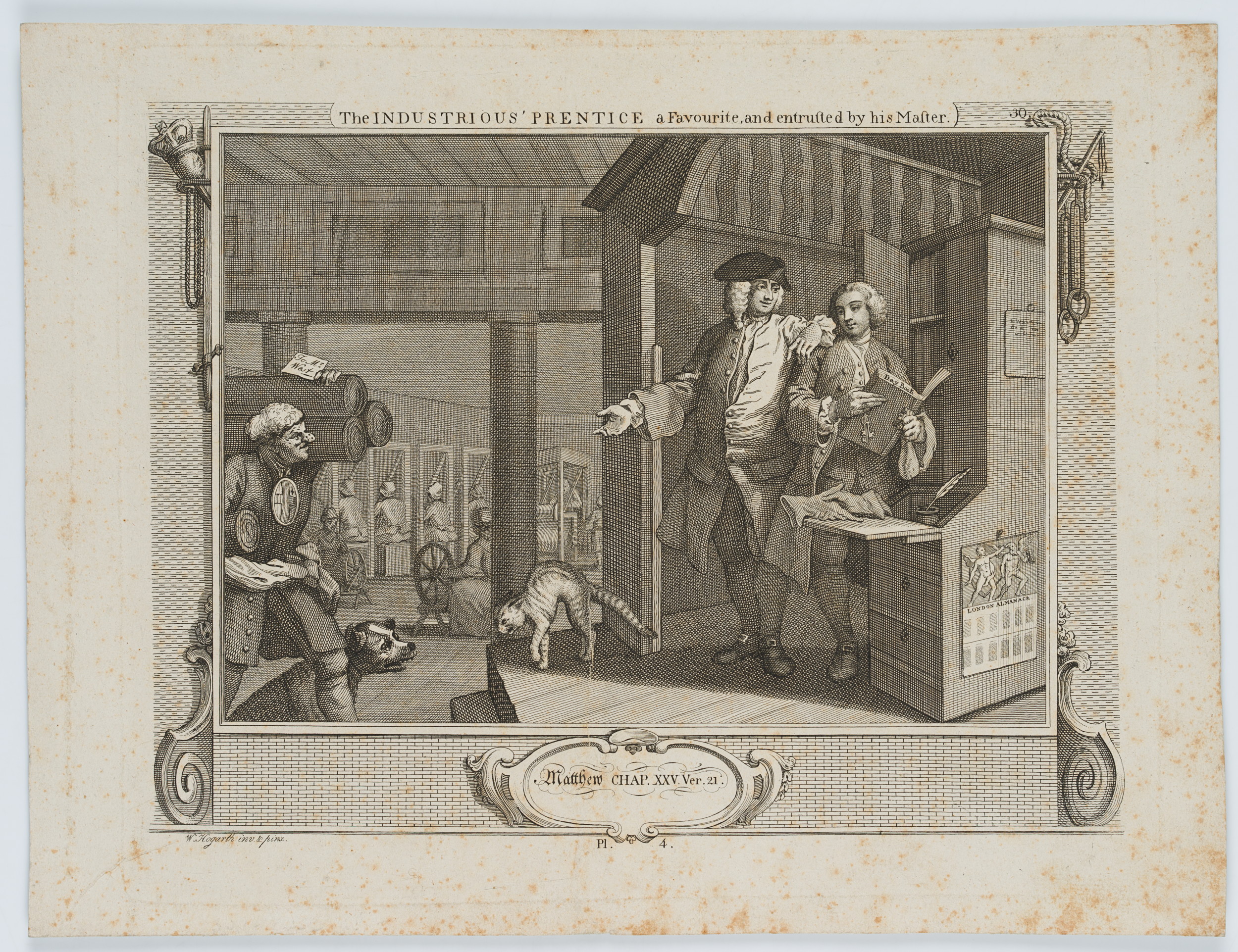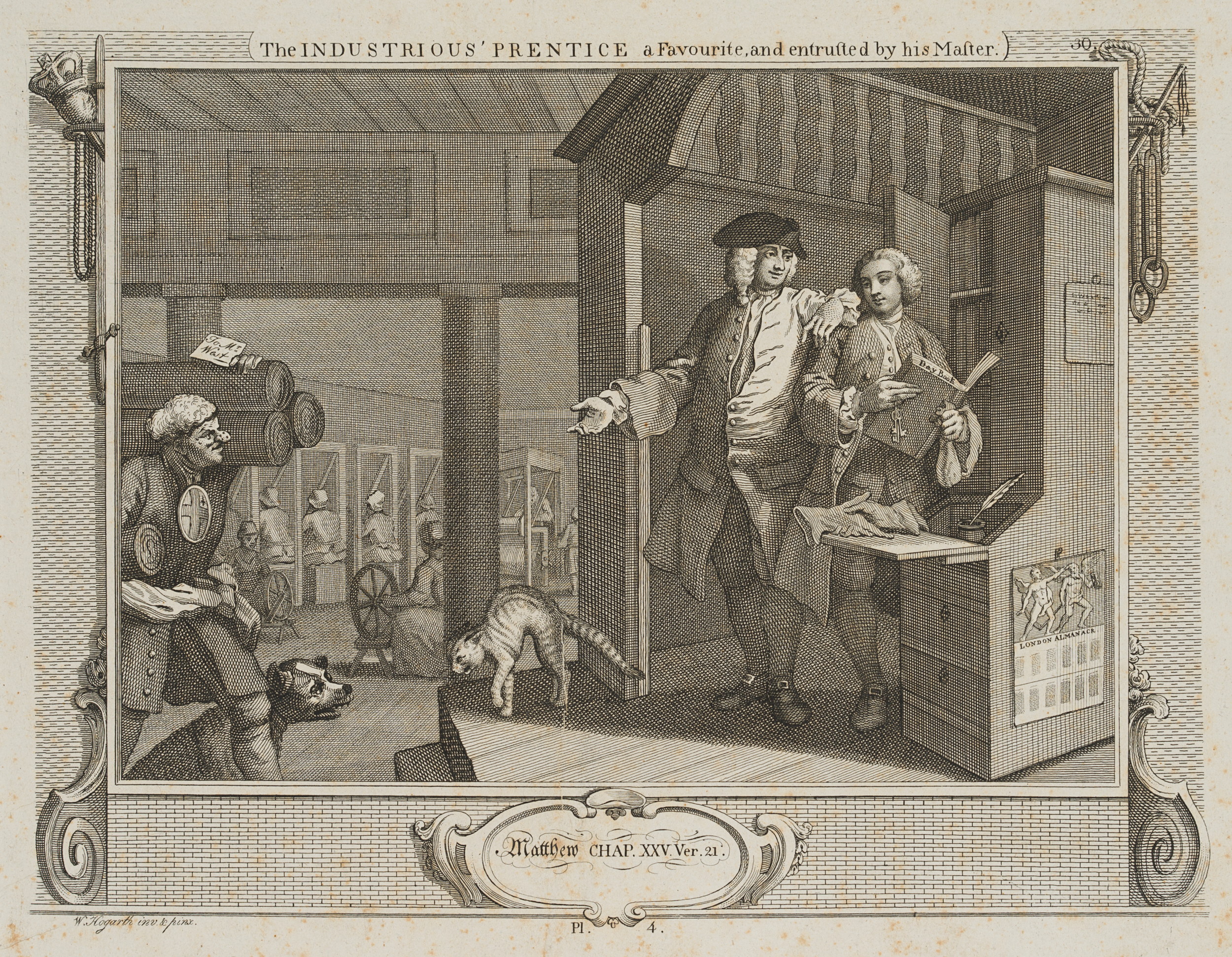 Nach William Hogarth (1697 London – 1764 ebd.), Fleißiger Lehrling, Industrious’ Prentice, um 1800, Kupferstich