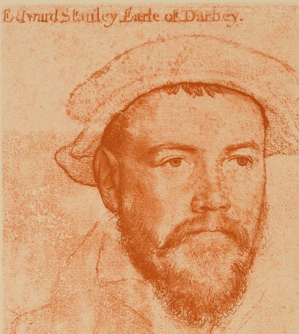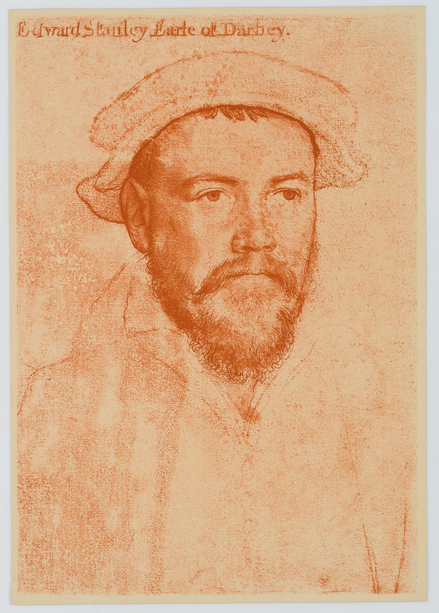 After Hans Holbein jun. (1498 Augsburg – 1543 London), Portrait of Edward Stanley (1509 – 1572), Third Earl of Derby, English nobleman and statesman, reproduction of a red chalk drawing, 19th century, Reproduction