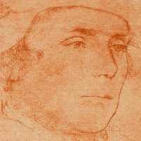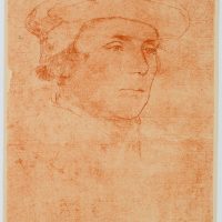 Nach Hans Holbein d. J. (1498 Augsburg – 1543 London), Portrait des Richard, Baron Rich (1496 – 1567, England), Lordkanzler von England, Schulterstück im Dreiviertelprofil mit Barett, Repro einer Rötelzeichnung, 19. Jahrhundert, Reproduktion