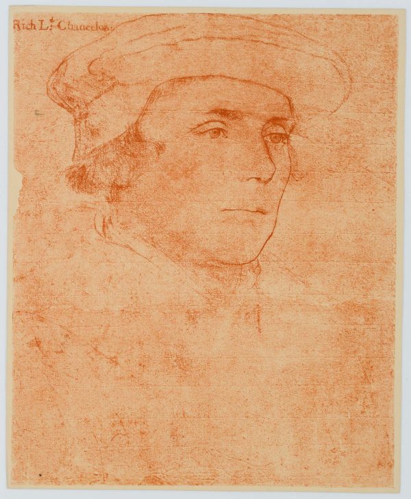 After Hans Holbein jun. (1498 Augsburg – 1543 London), Portrait of Richard, Baron Rich (1496 – 1567, England), Lord Chancellor of England, shoulder piece in three-quarter profile with beret, repro of a red chalk drawing, 19th century, Reproduction