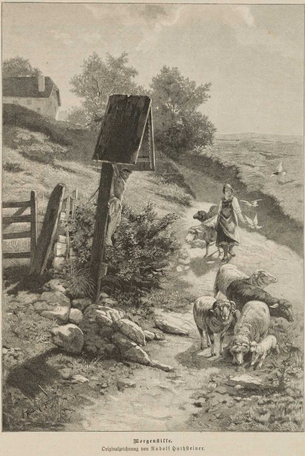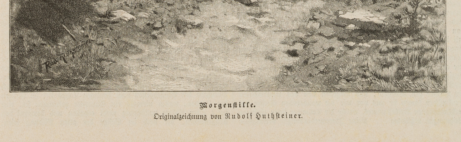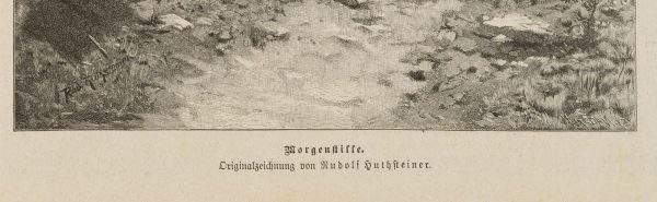 - Bezeichnung: Unterhalb beschriftet: “Morgenstille. Originalzeichnung von Rudolf Huthsteiner”.