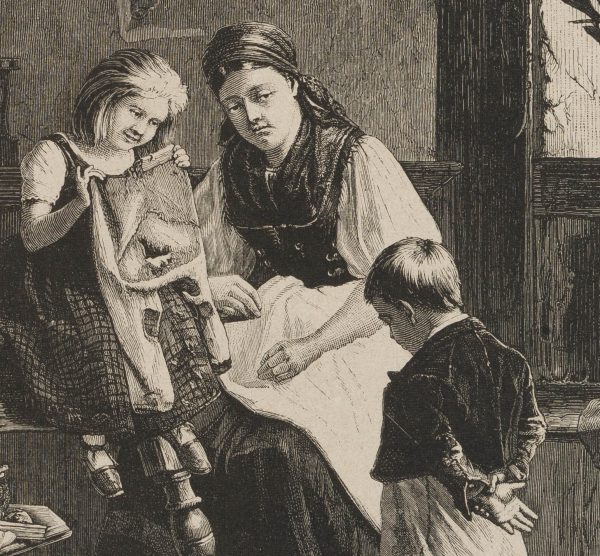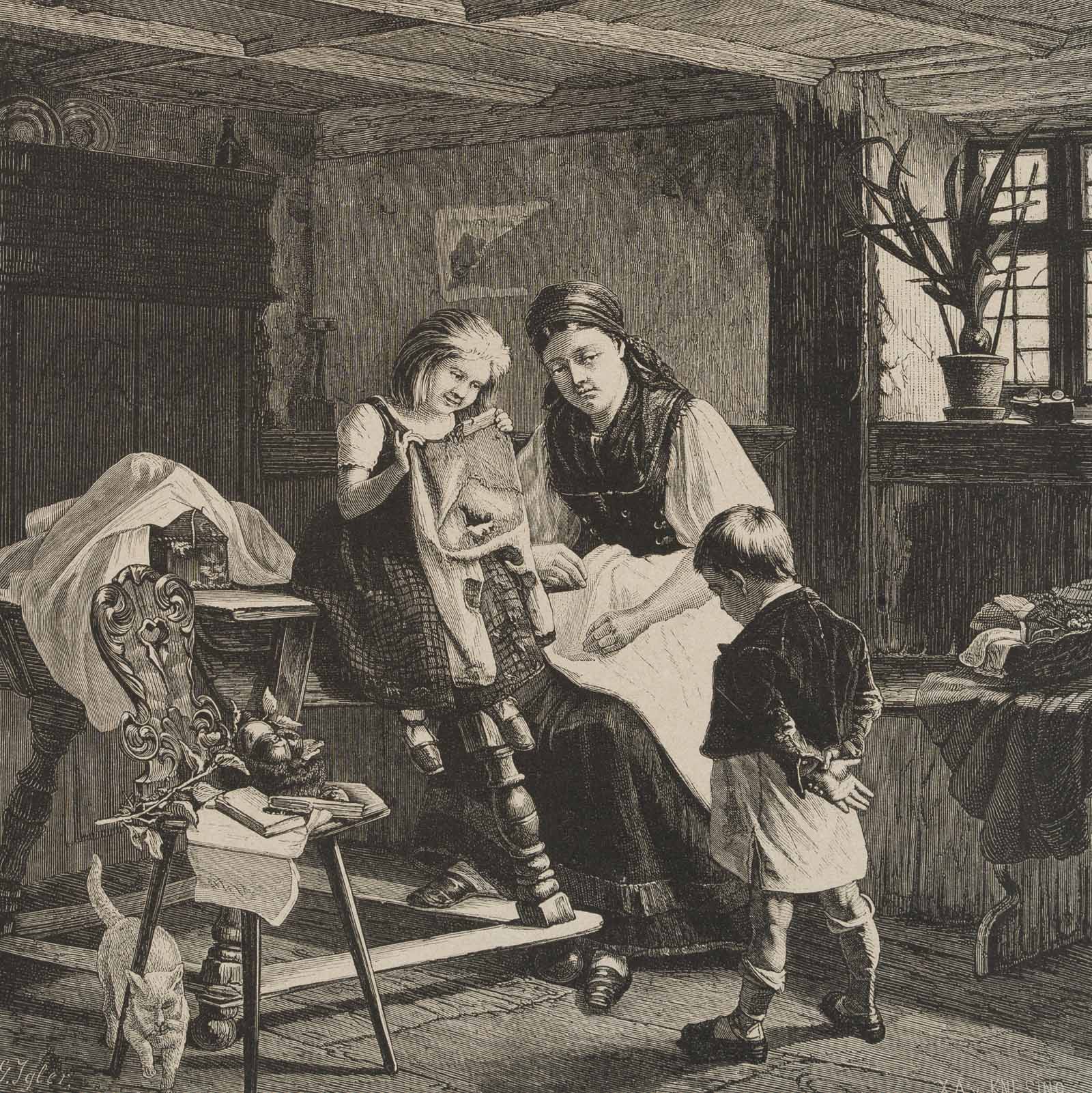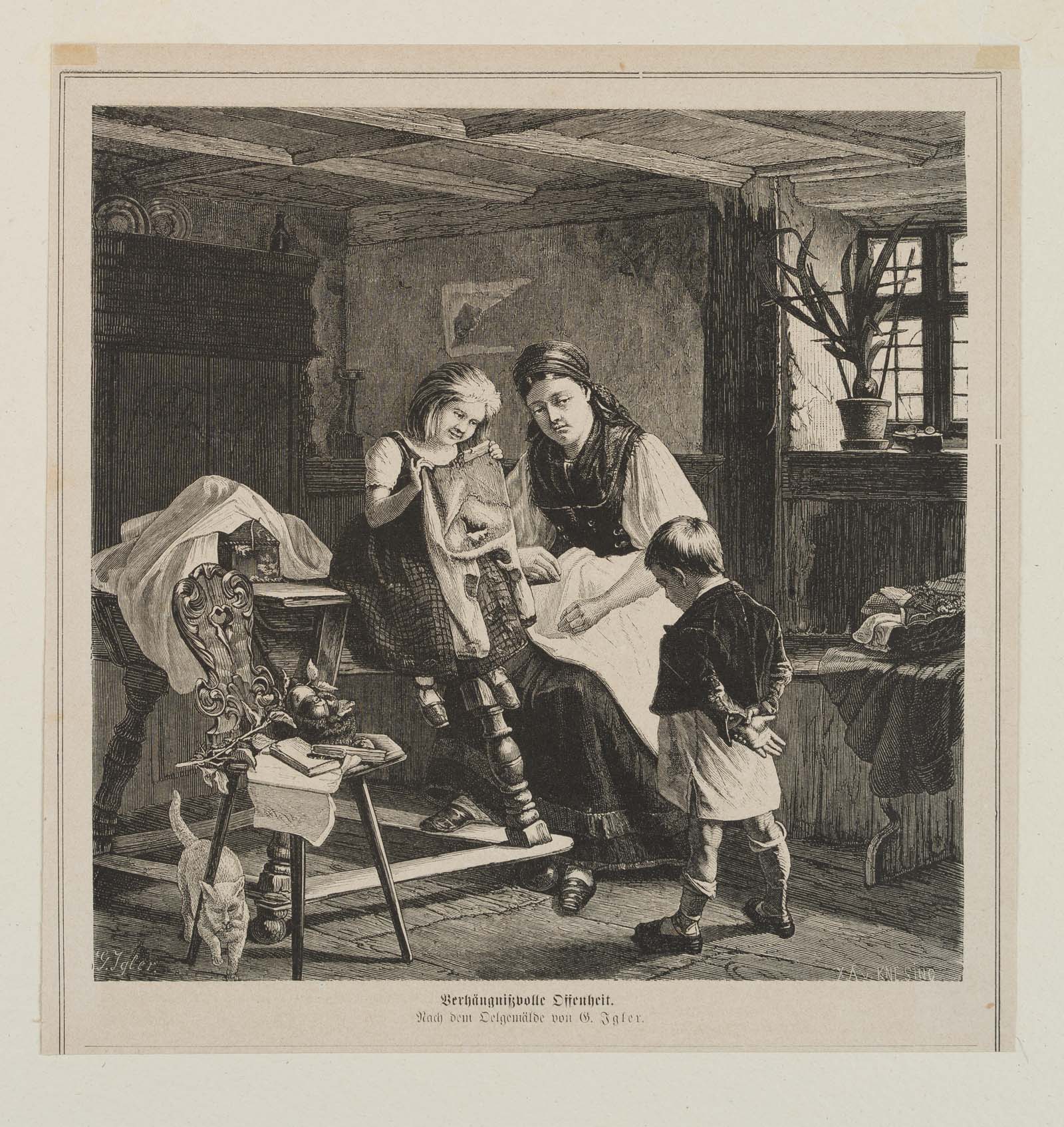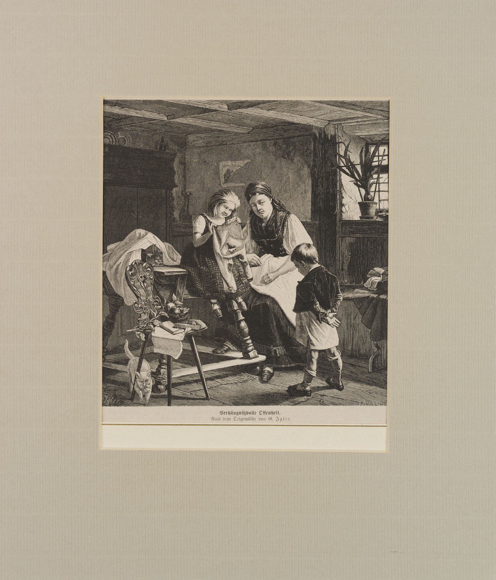 After Gustav Igler (1842 Ödenburg – 1937 Munich), After the oil painting, “Fatal Openness”, Interior, c. 1880, Wood engraving