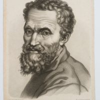 - Description: Successful lithograph after the self-portrait of the important Italian sculptor and painter Michelangelo Buonarroti (1475 Caprese, Tuscany – 1564 Rome), creator of the “David” in front of the Palazzo Vecchio in Florence as well as the ceiling fresco and the “Last Judgement” in the Sistine Chapel, Cappella Sistina in Vaticano.