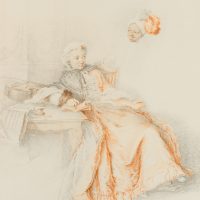 After Nicolas François Portail (18th century), Musical lady in rococo dress having coffee, , Photogravure