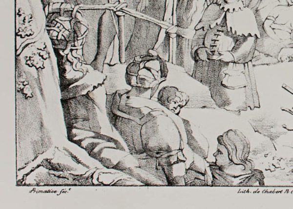 - Description: John (Jean) Preaching in the Wilderness”, lithograph of a work by Primaticcio (1504 – 1570). From the series: Pictures of the Romanesque School (Ecole Lombarde). Inscribed: Primatice fec Lith. de Chabert, rue Cassette N. 20. Letelier del.