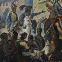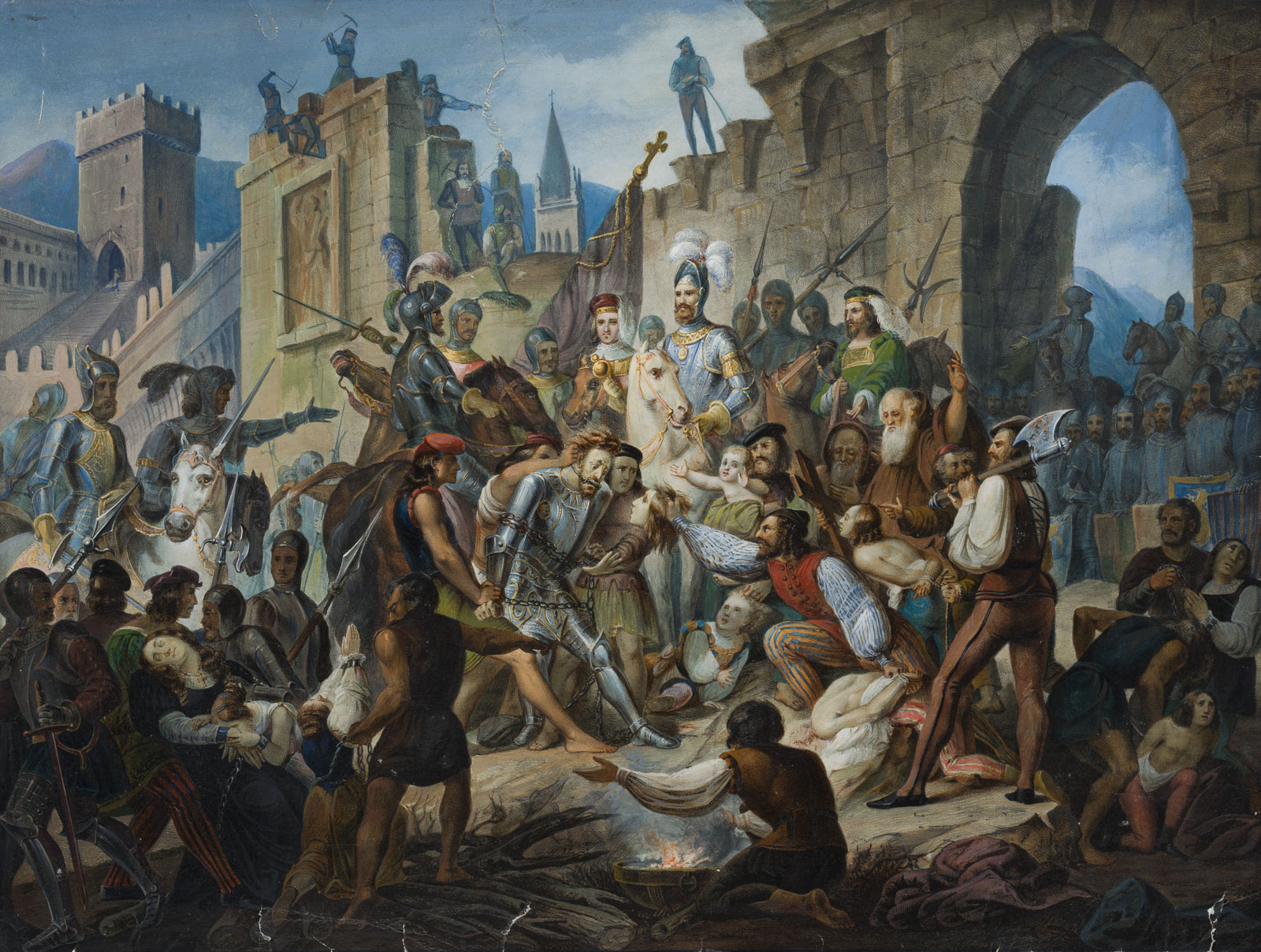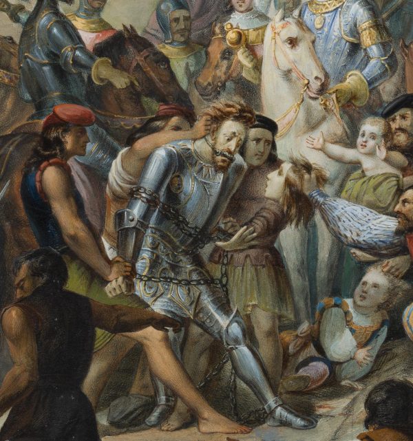 - Description: Inscribed on the verso by another hand with the artist’s life data and titled “Conquest of Ghent”. The Viennese painter Carl Rahl attended the Academy in Vienna, after which he went to Munich, Stuttgart, Hungary and in 1836 to Italy to study there according to the representatives of the Roman school. He travelled to Paris, Sweden and Norway before settling in Munich; he became acquainted with Heinrich Heine and Anselm Feuerbach; in 1850 he was appointed professor at the Vienna Academy of Fine Arts. He rests in Vienna’s Central Cemetery; in Vienna-Mariahilf, Rahlgasse was named after him as well as the neighbouring Rahlstiege.