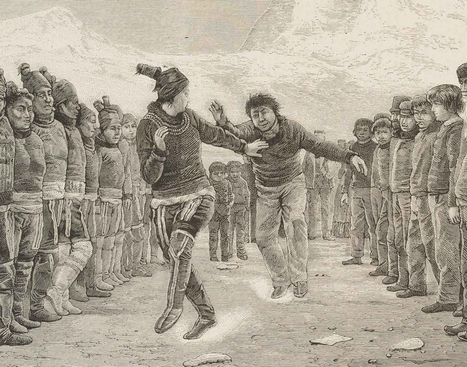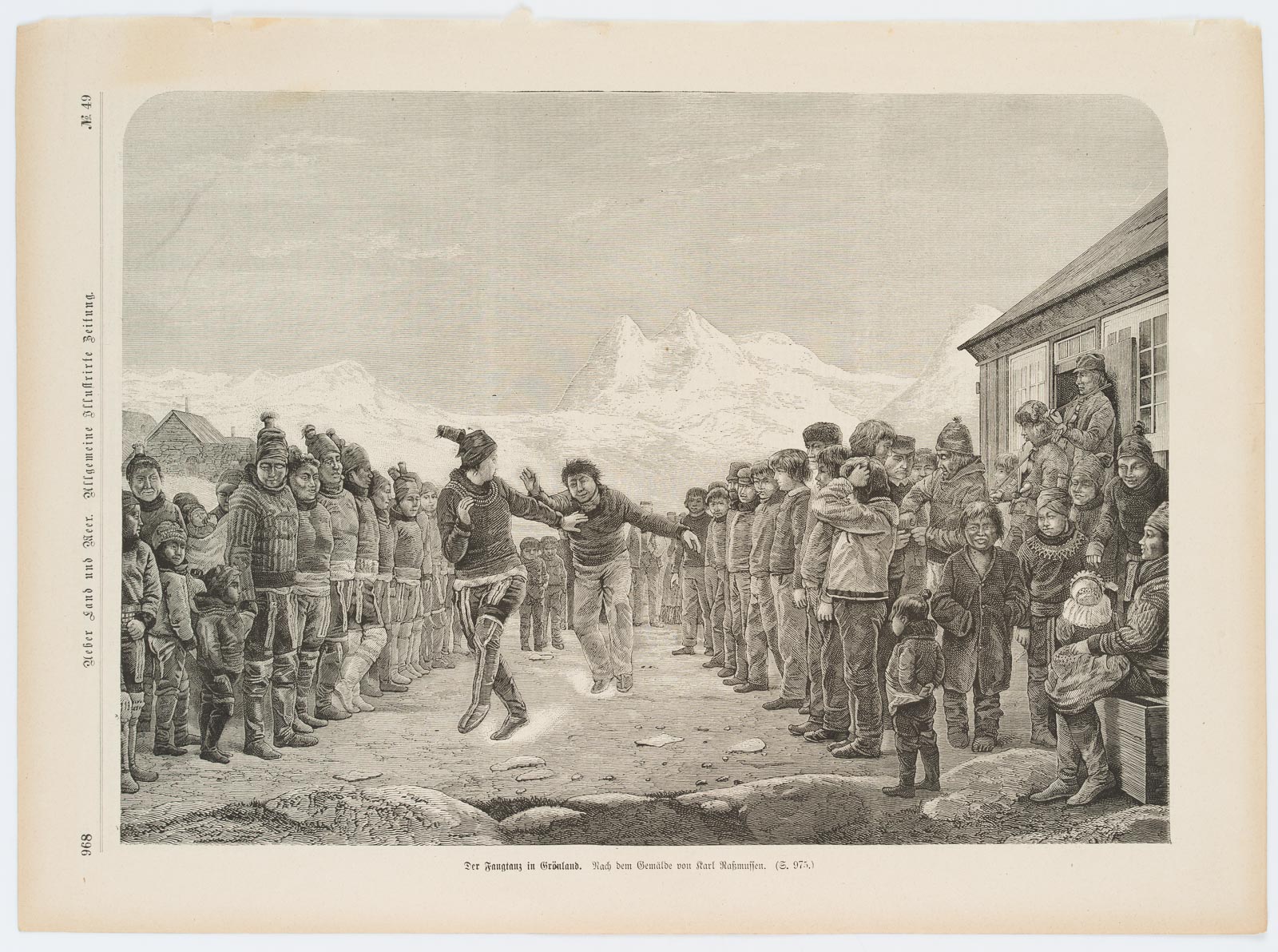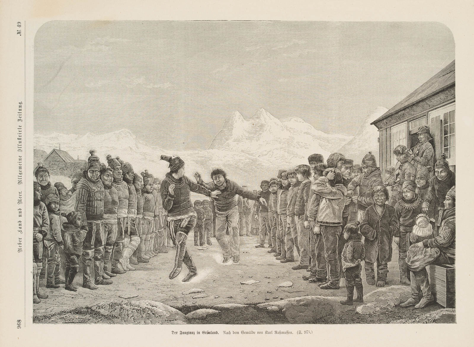 After Karl Raßmussen (1841 Denmark – 1893 Scotland), After the painting, “The Fishing Dance in Greenland”, c. 1876, Wood engraving