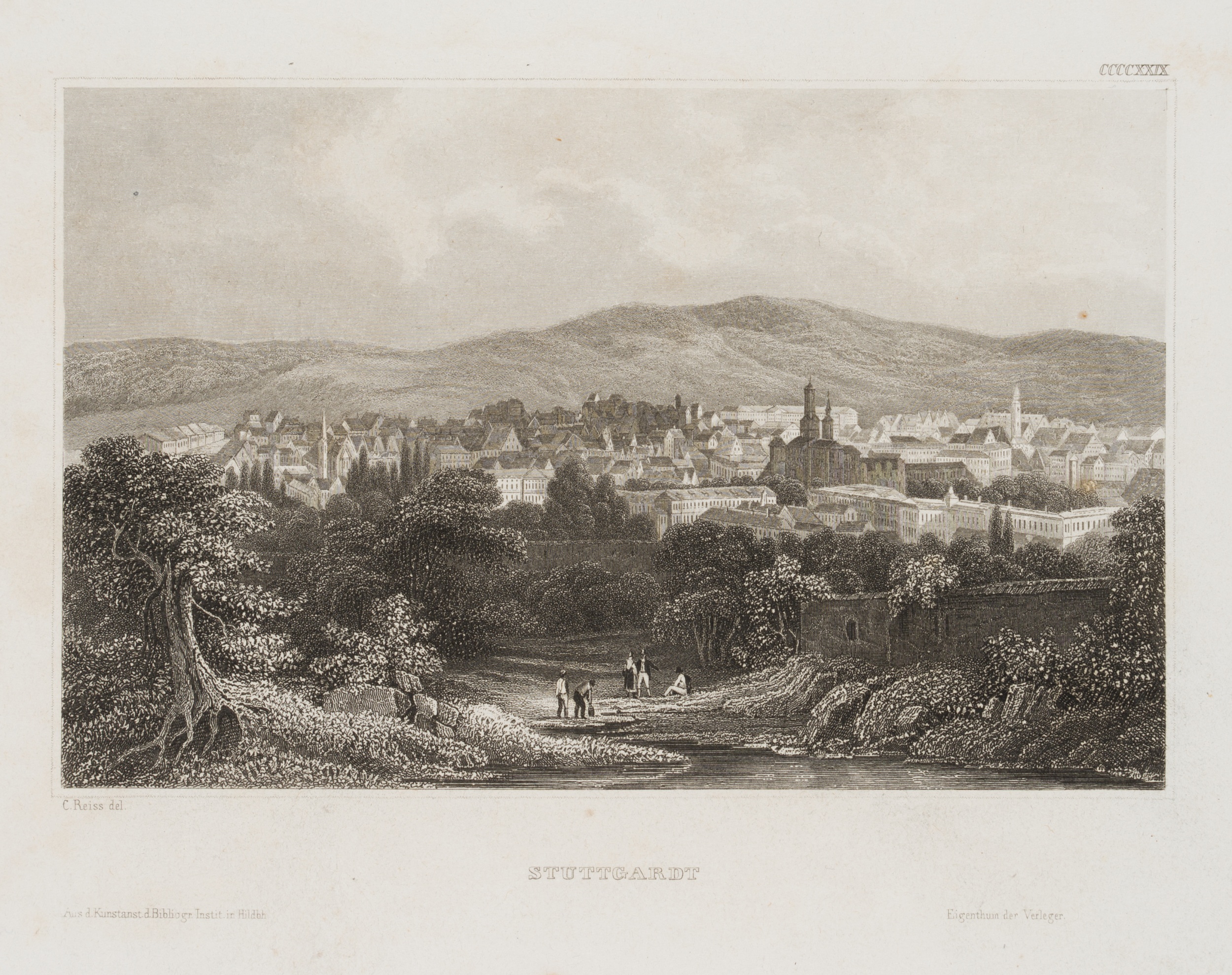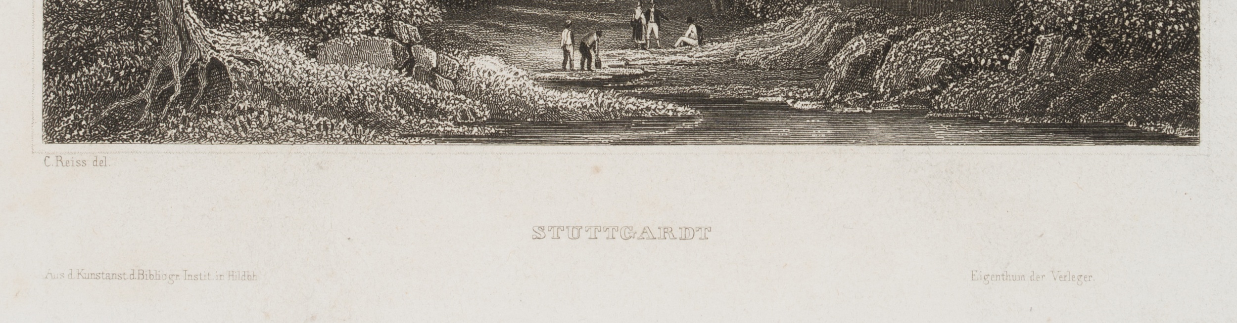- Bezeichnung: Unten links im Druck signiert: “C. Reiss del”. Unten im Druck bezeichnet: “Stuttgart”.