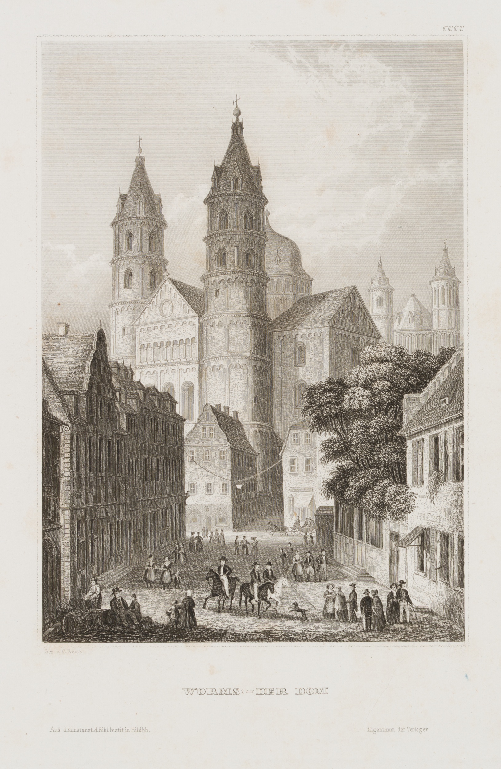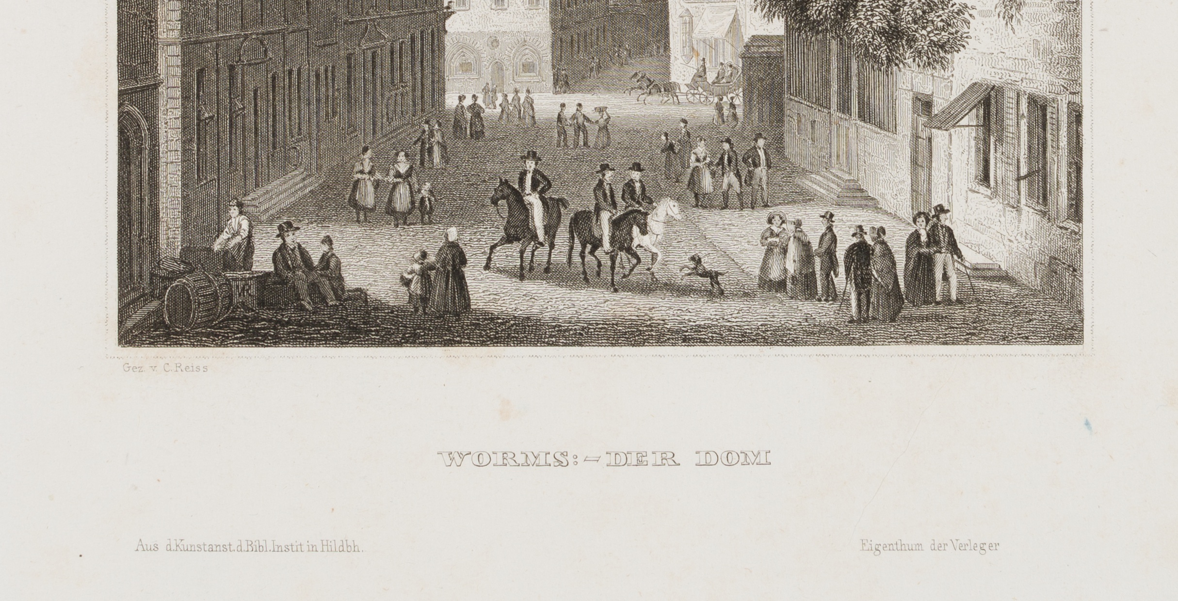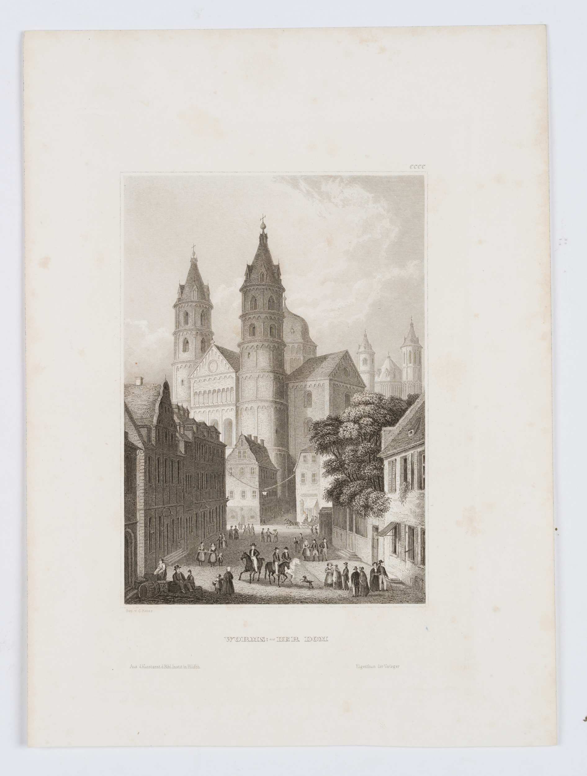 - Inscription: lower left signed in the printing plate: „Gez. v. Reiss“. At the lower part inscribed in the printing plate: „Worms :- Der Dom“.