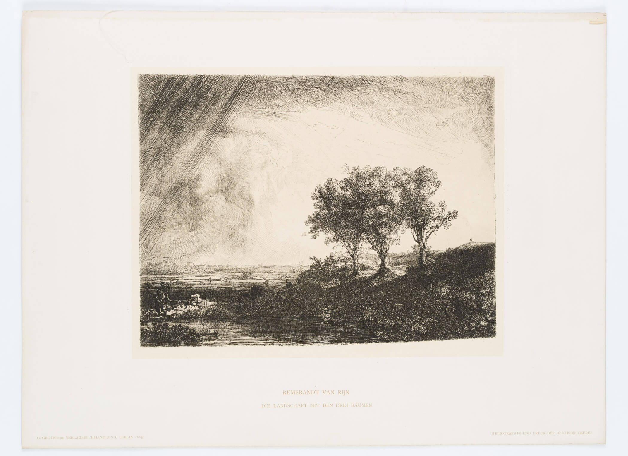 Nach Rembrandt: Rembrandt Harmenszoon van Rijn (1606 Leiden – 1669 Amsterdam), Die Landschaft mit den drei Bäumen, 1885, Fotogravur