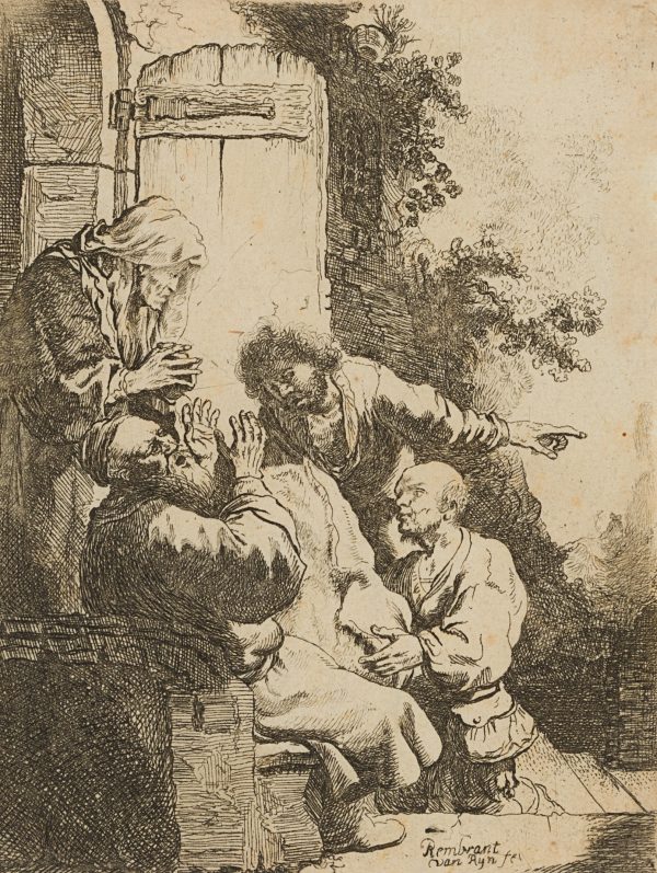 After Rembrandt: Rembrandt Harmenszoon van Rijn (1606 Leiden – 1669 Amsterdam), Joseph’s skirt is brought to Jacob, after 1635, Etching