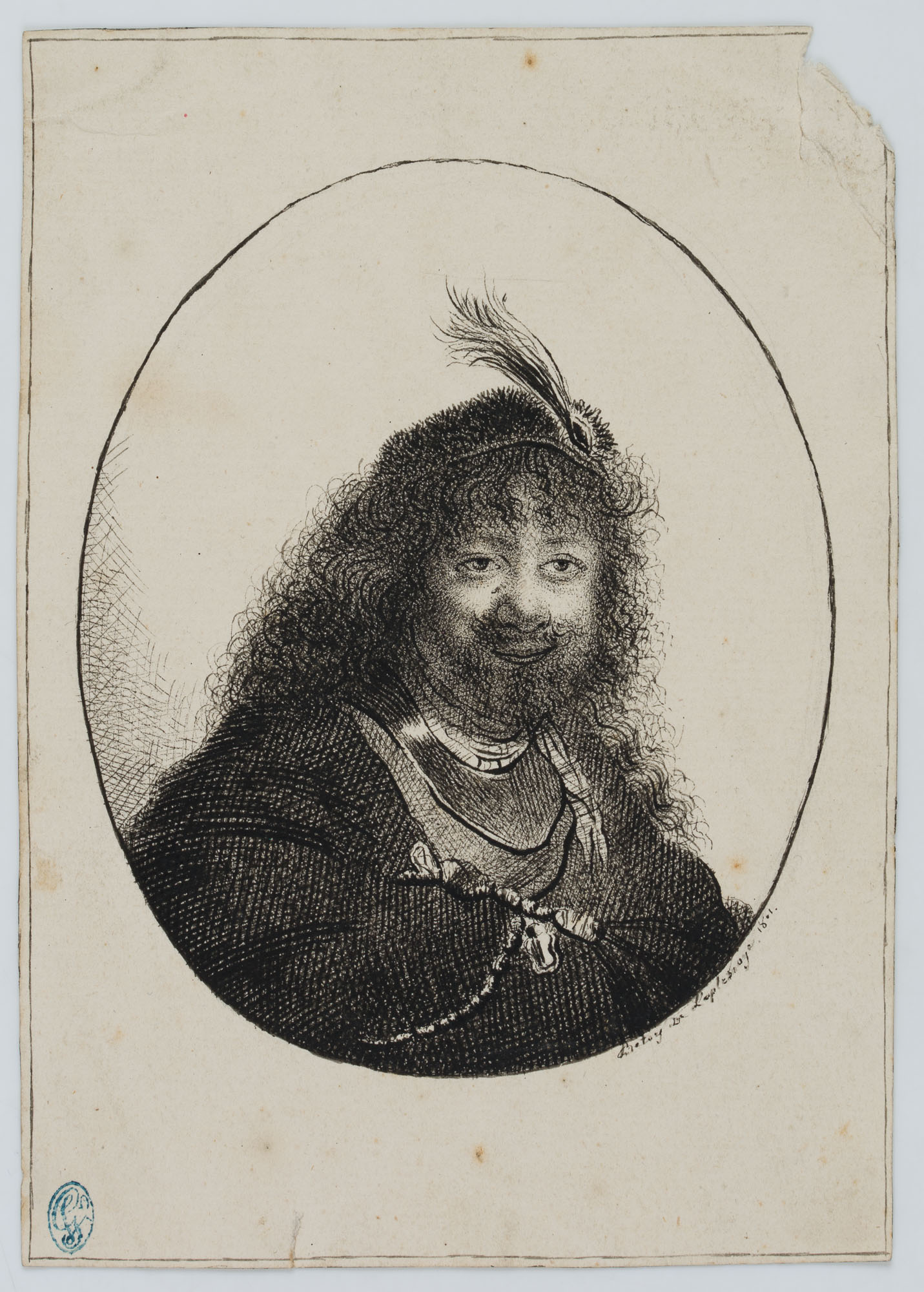 Nach REMBRANDT (*1606), Selbstbildnis mit federgeschmücktem Barett, 1801, Rad.