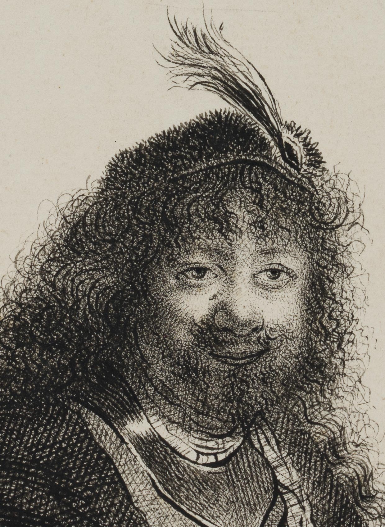 After Rembrandt: Rembrandt Harmenszoon van Rijn (1606 Leiden – 1669 Amsterdam), Self-portrait with feather-adorned beret, 1801, Etching
