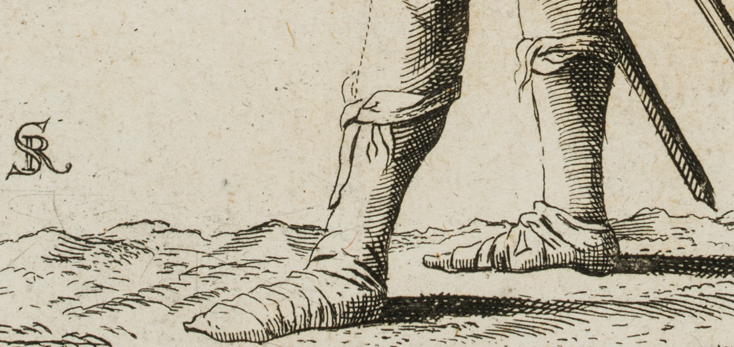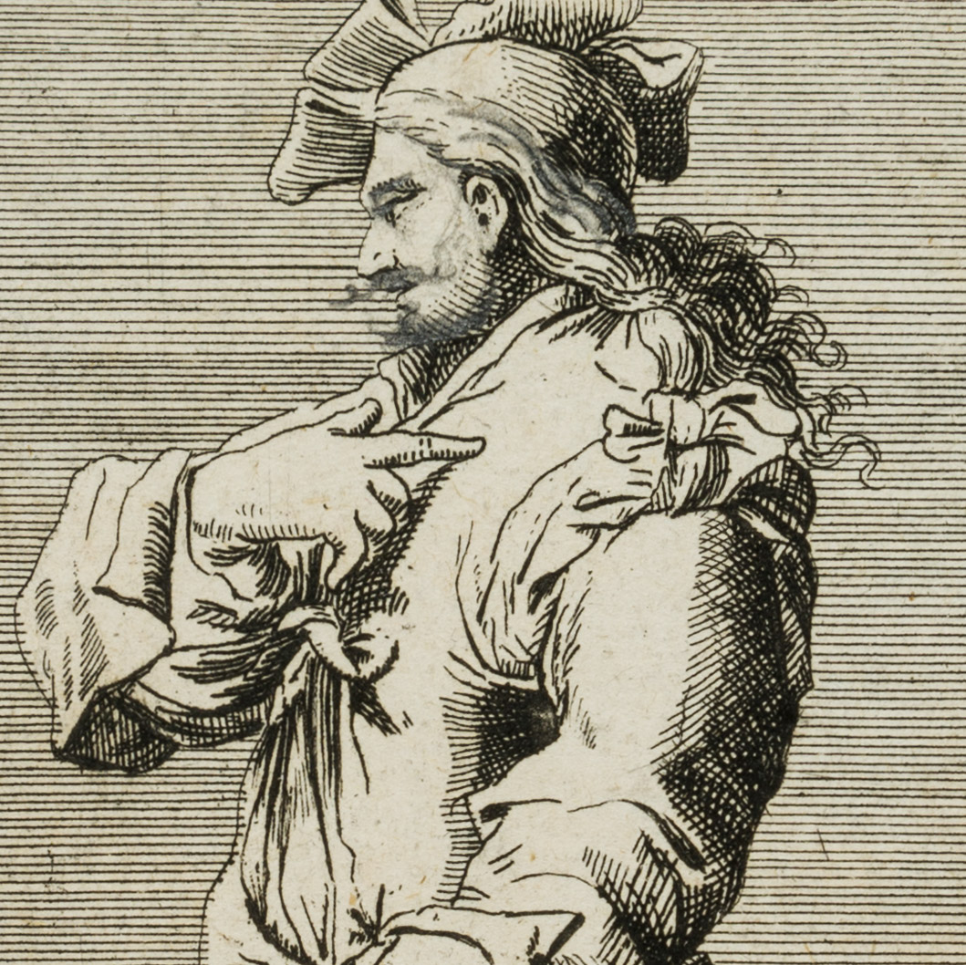 - Bezeichnung: Unten links monogrammiert: “SR” (ligiert); Nach Salvator ROSA (1615 Neapel-1673 Rom), aus: “Has Ludentis otij [..]”, auch genannt “Figurine”; oben links nummeriert: “9”.