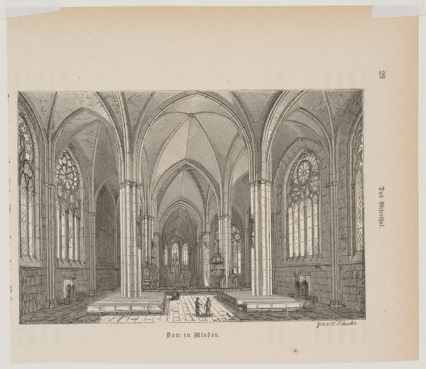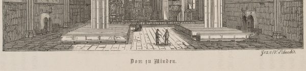 Nach Werner Wilhelm Schuch (1843 Hildesheim – 1918 Berlin), Dom zu Minden. Innenansicht mit Blick durch das Langhaus zum Chor, 19. Jahrhundert, Holzstich