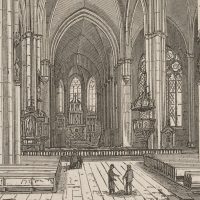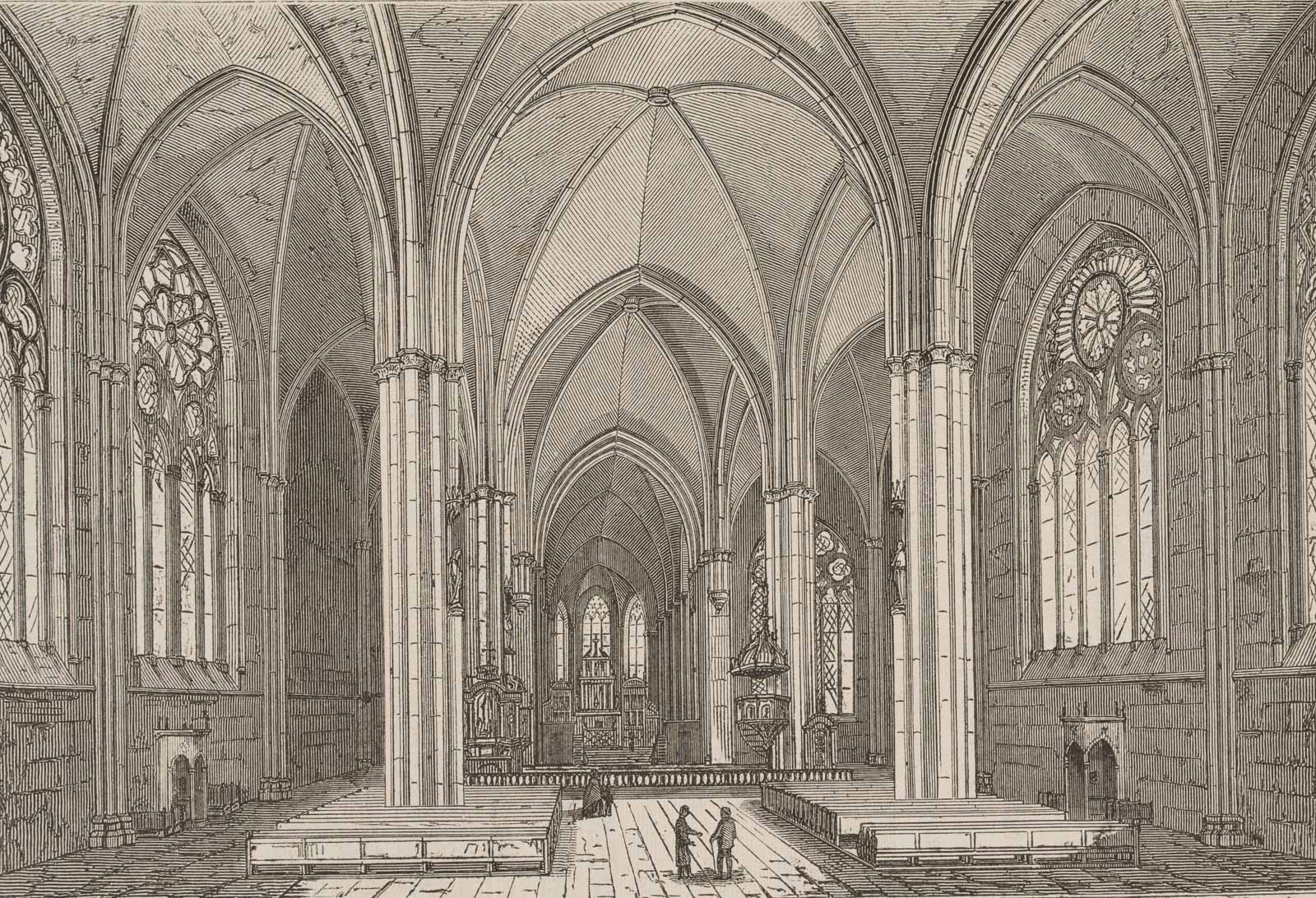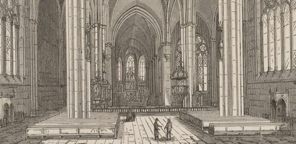 After Werner Wilhelm Schuch (1843 Hildesheim – 1918 Berlin), Minden Cathedral Interior view with view through the nave to the choir, 19th century, Wood engraving
