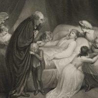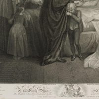 Unter der Darstellung bezeichnet mit Titel, Dedikation an die Queen um das Wappen vom Verleger, 14 Zeilen von Goldsmith: ‘Thus to relieve the wretched was his pride .. And his last fault’ring accents whisper’d praise. / Vide Goldsmith’s Deserted Village’ and “Painted by T. Stodhard / Engraved by S. Miller, under the inspection of J. K. Sherwin / London, Published Jany. 1st. 1791, by R. Wilkinson, No. 58 Cornhill”.