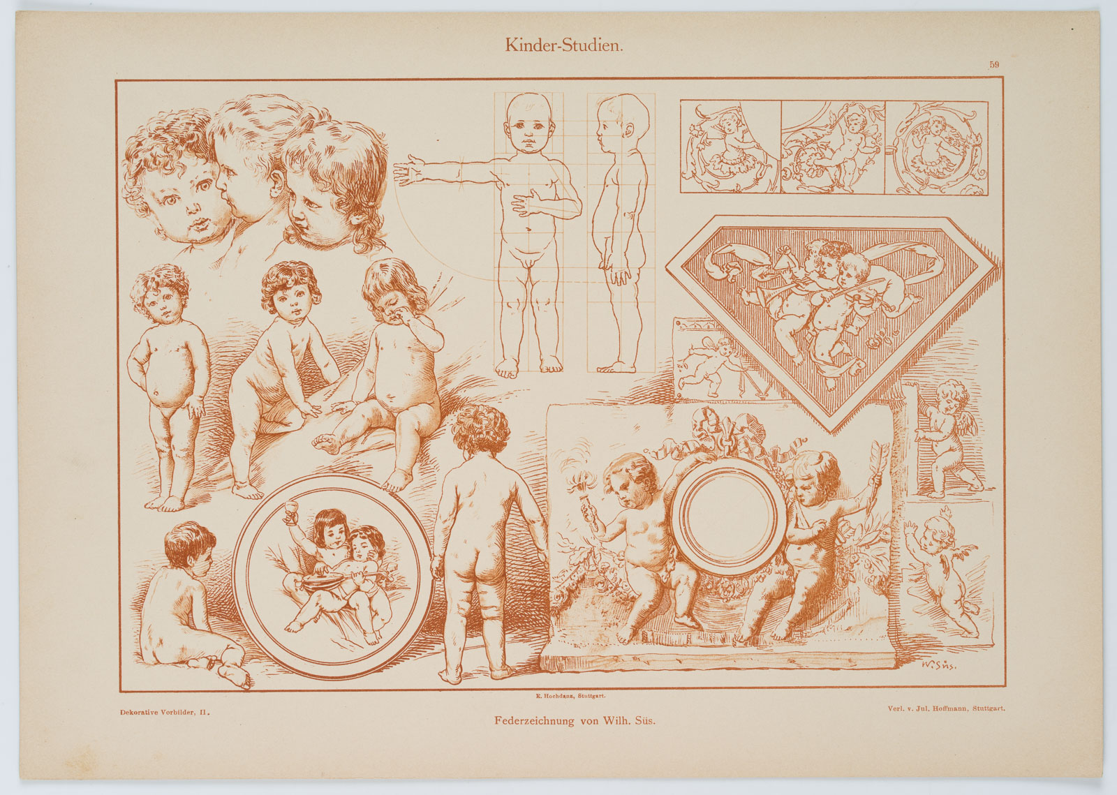 After Wilh. Süs (19th century), Children’s studies, c. 1890, Chromolithograph