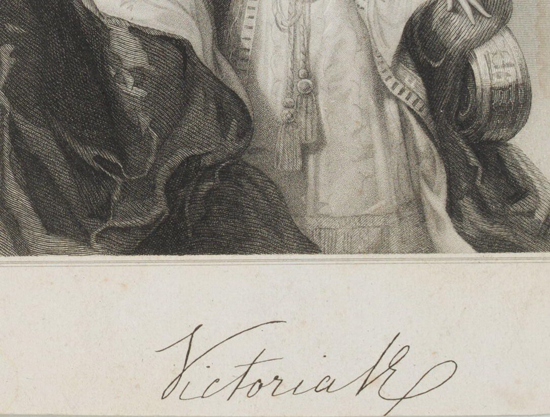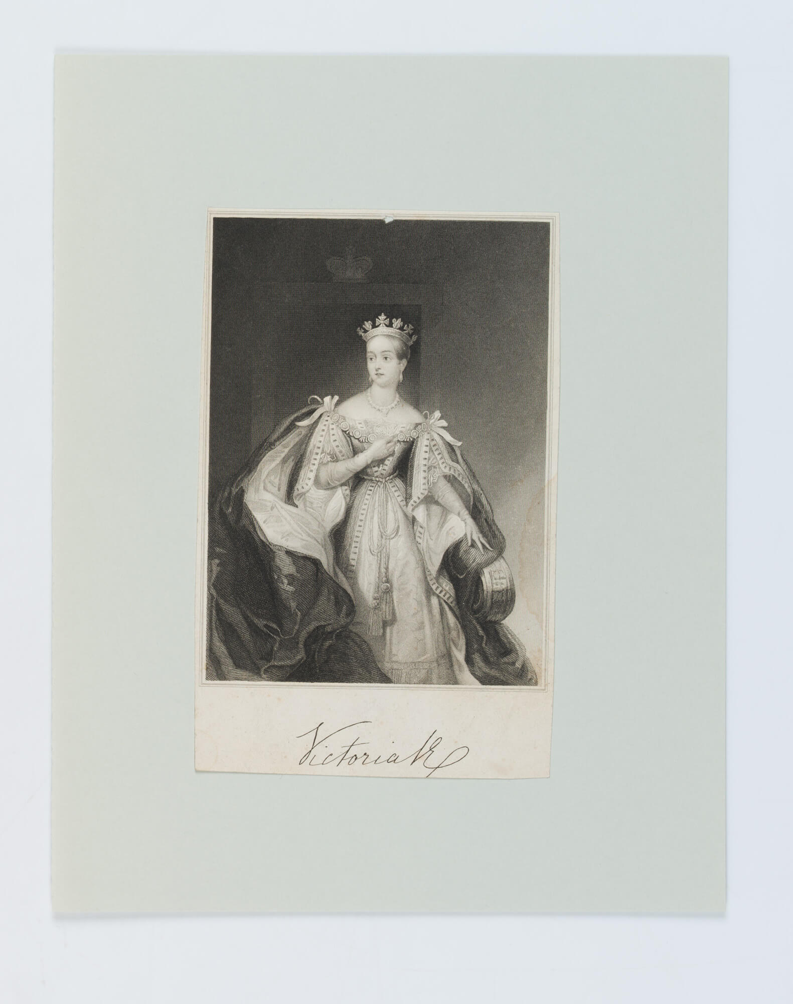 - Description: Three-quarter length portrait of Queen Victoria with (printed) autograph.