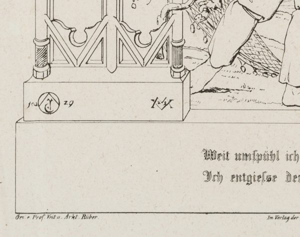 On the left, Veith’s monogram can be seen in the stone, as well as a date of 1829.