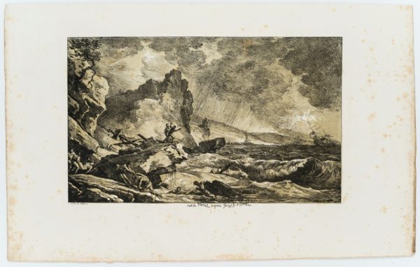 After Claude Joseph Vernet (1714 Avignon – 1789 Paris), Shipwreck on a rocky coast, 19th century, Lithography