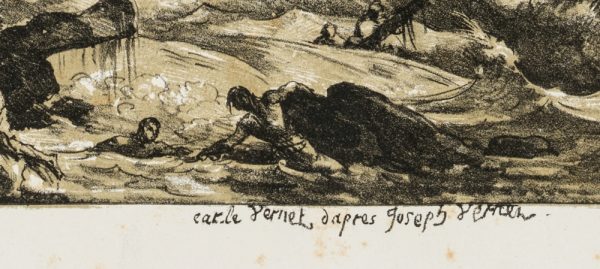 The lithograph is by Vernet’s son, Carle Vernet (also Antoine Charles Horace Vernet, 1758-1836), who, as a pupil of his father, presumably copied his father’s masterpieces for practice purposes and drew them in stone.