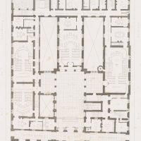 - Beschreibung: Blatt aus dem Werk ‚Encyclopedie d’Architecture‘ hg. v. Adolphe LANCE, über die Jahre 1813-1874 publiziert. Oberhalb mit dem Namen der Enzyklopädie und unterhalb mit dem Namen des Palastes beschriftet. Oben mittig nummeriert mit „PL. 1002“. Oben rechts datiert auf das Jahrhundert „XIX SIECLE“.