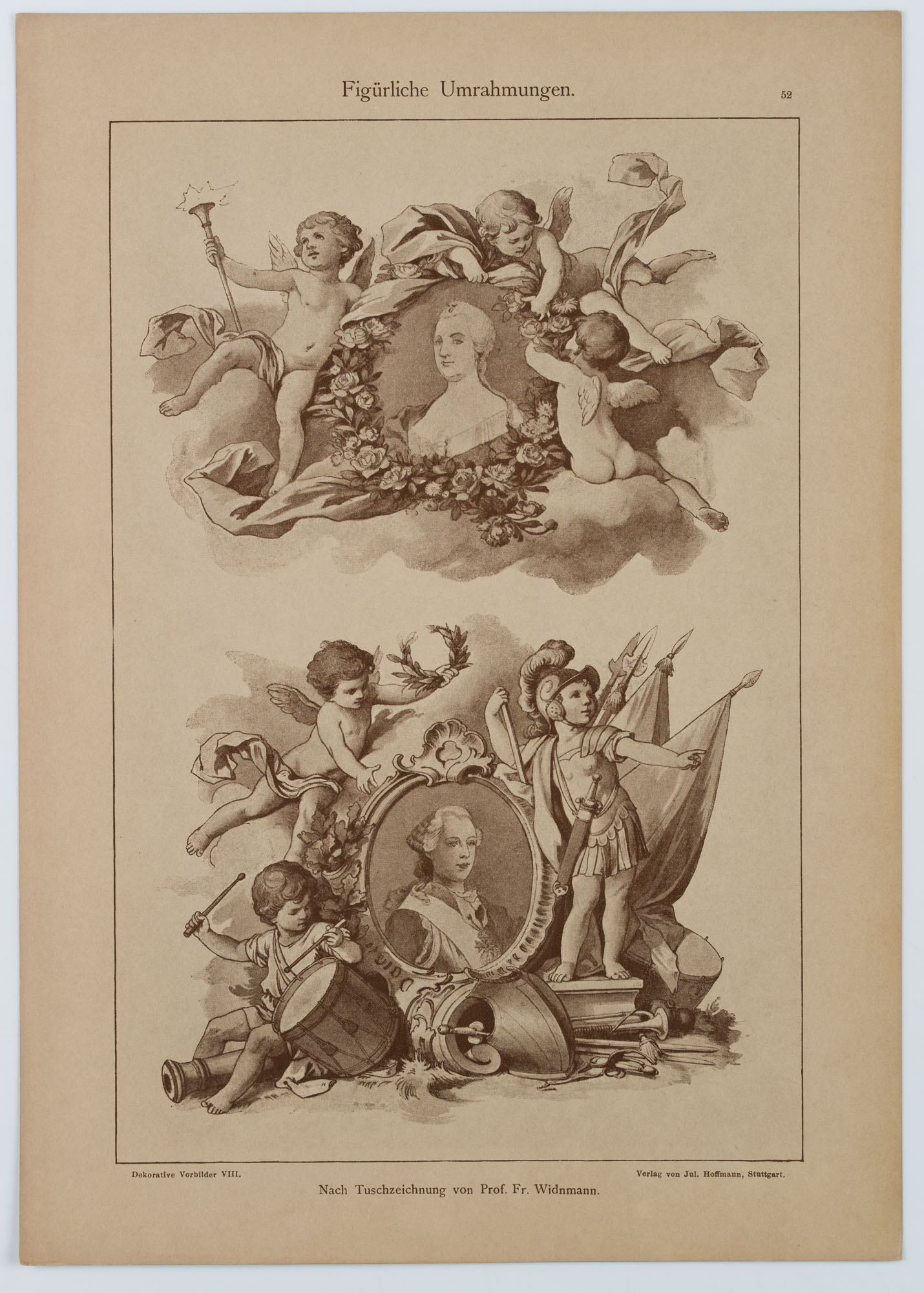 Nach Prof. Fr. Windmann (19. Jahrhundert), Figürliche Umrahmungen, um 1890, Chromolithographie