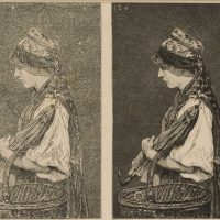 After Carl Ziermann (1850 Saalfeld on the Saale – 1881 Bad Berka), The Art of Working a Wood Engraving, Breast Portrait in Profile of a Thuringian Girl, Before and After Finishing, 1880, Wood engraving